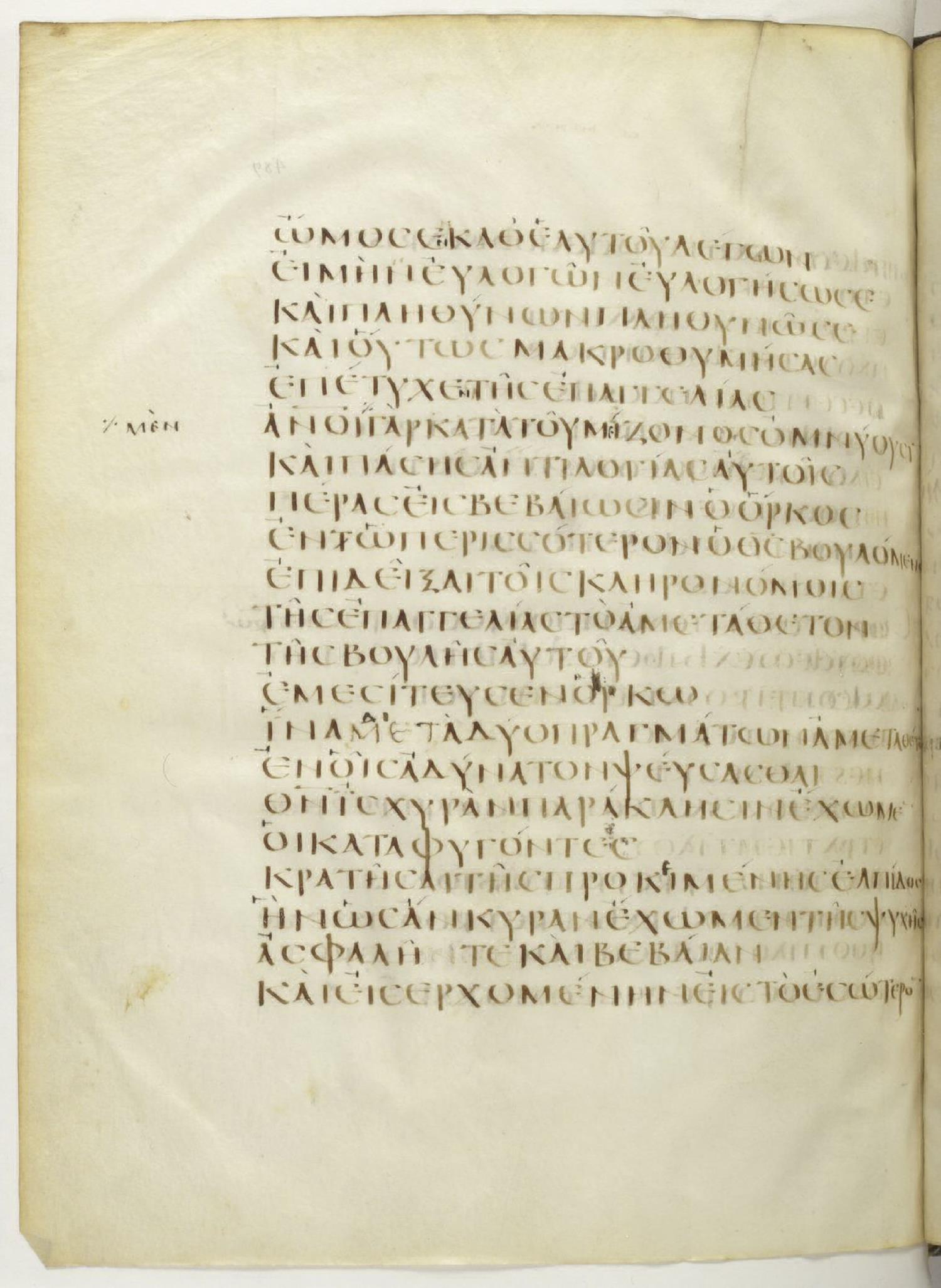 Codex Claromontanus is a sixth century majuscule of Paul on parchment; Greek-Latin diglot; 533 leaves, single column, 21 lines per column. For more recent images, please visit the Bibliothèque Nationale, Gr 107 and Gr 107 A.