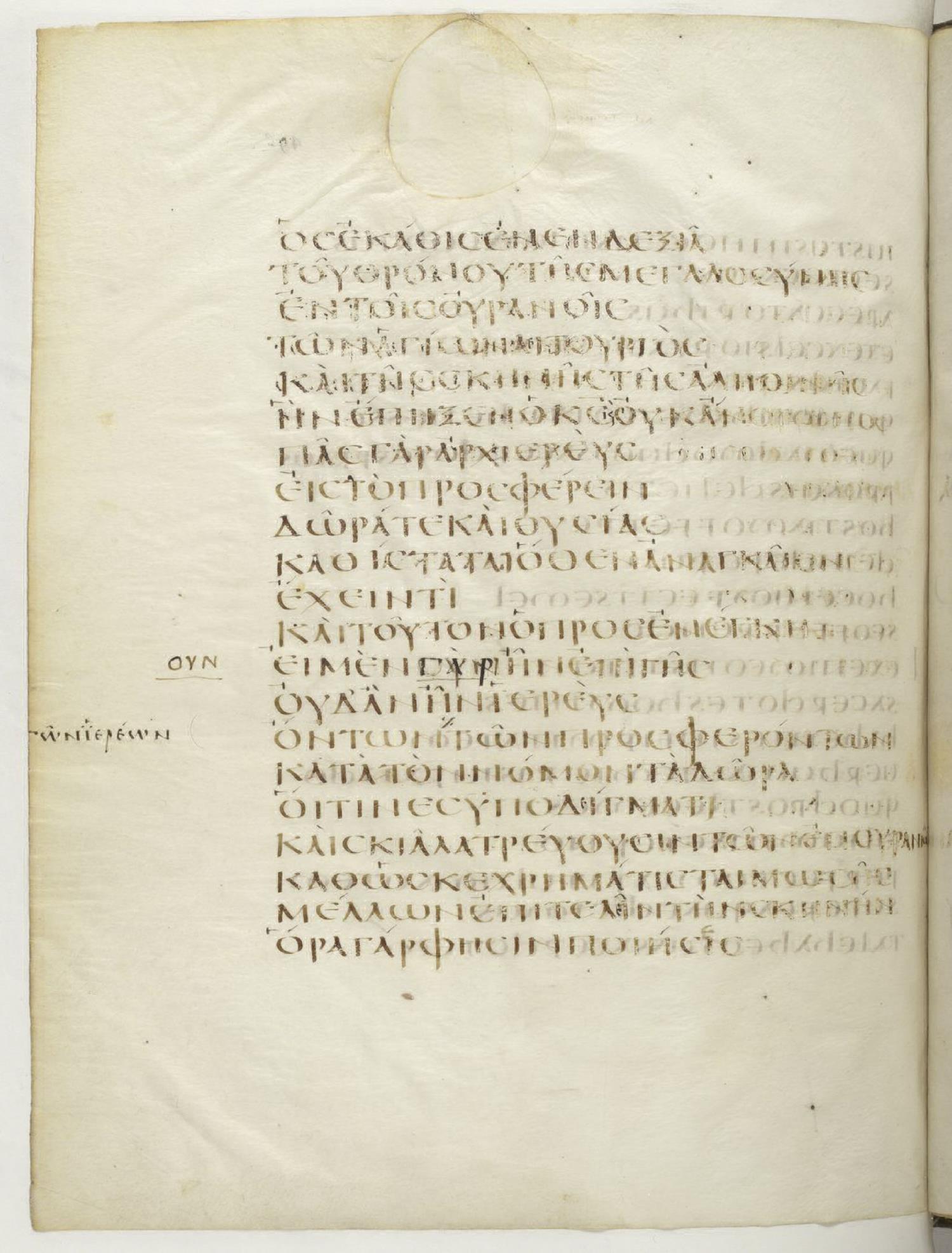 Κεφάλαιον δὲ ἐπὶ τοῖς λεγομένοις, τοιοῦτον ἔχομεν ἀρχιερέα, ὃς ἐκάθισεν ἐν δεξιᾷ τοῦ θρόνου τῆς μεγαλωσύνης ἐν τοῖς οὐρανοῖς,