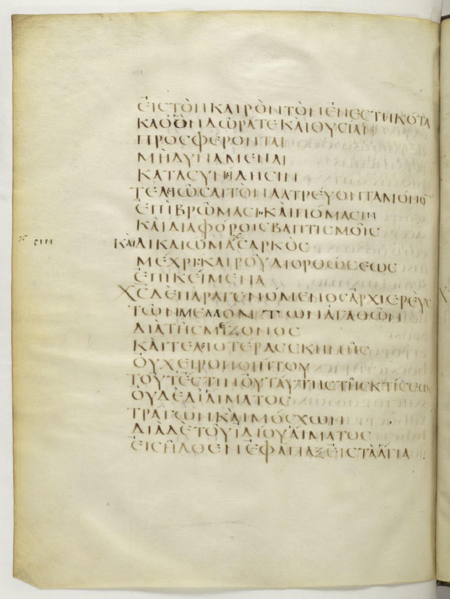 Χριστὸς δὲ παραγενόμενος ἀρχιερεὺς τῶν γενομένων ἀγαθῶν διὰ τῆς μείζονος καὶ τελειοτέρας σκηνῆς οὐ χειροποιήτου, τοῦτ´ ἔστιν οὐ ταύτης τῆς κτίσεως,