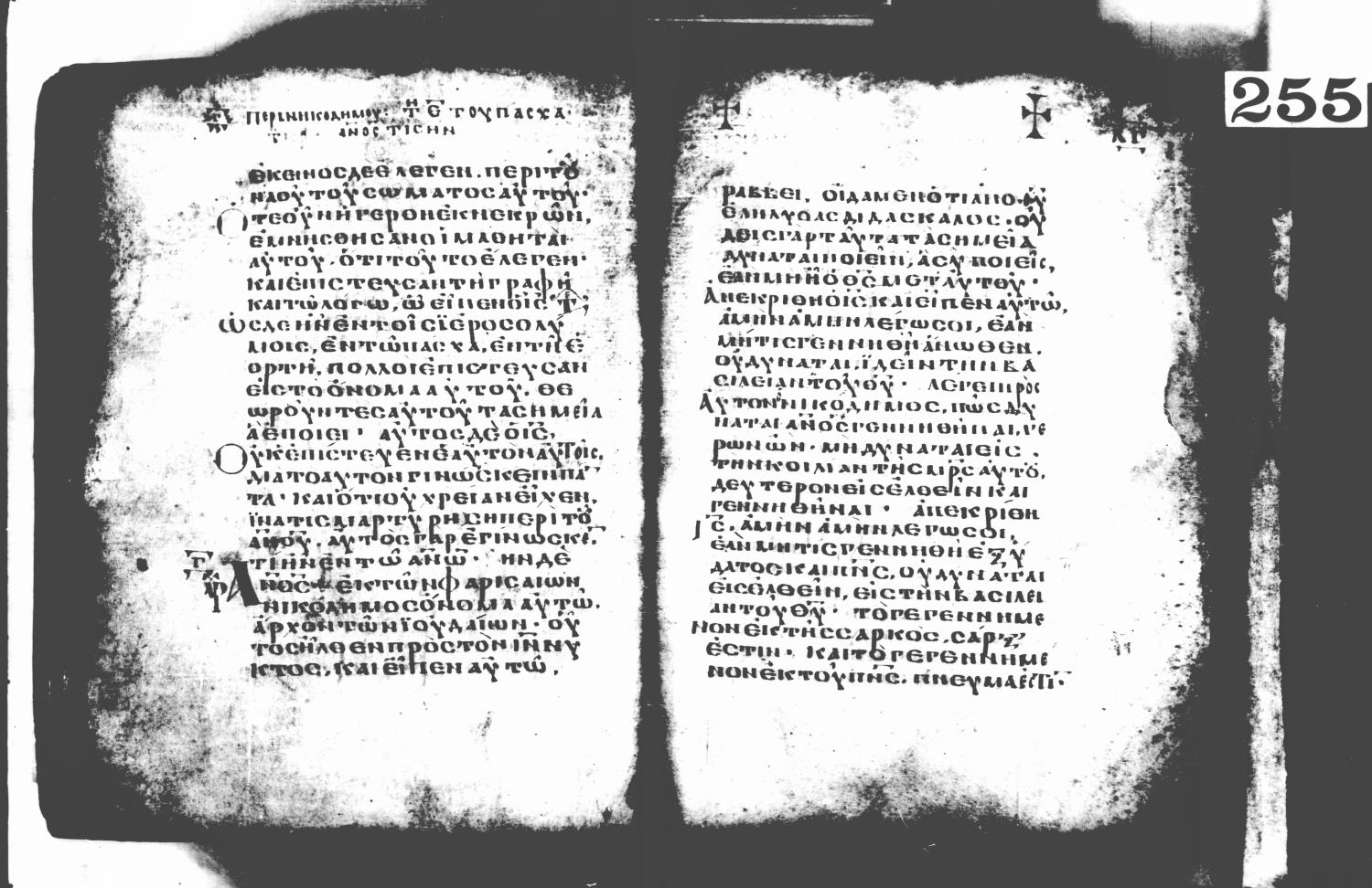 Codex Basilensis is an eighth century majuscule of the Gospels on parchment; 318 leaves, single column, 23-26 lines per column. Digital images are from microfilm.