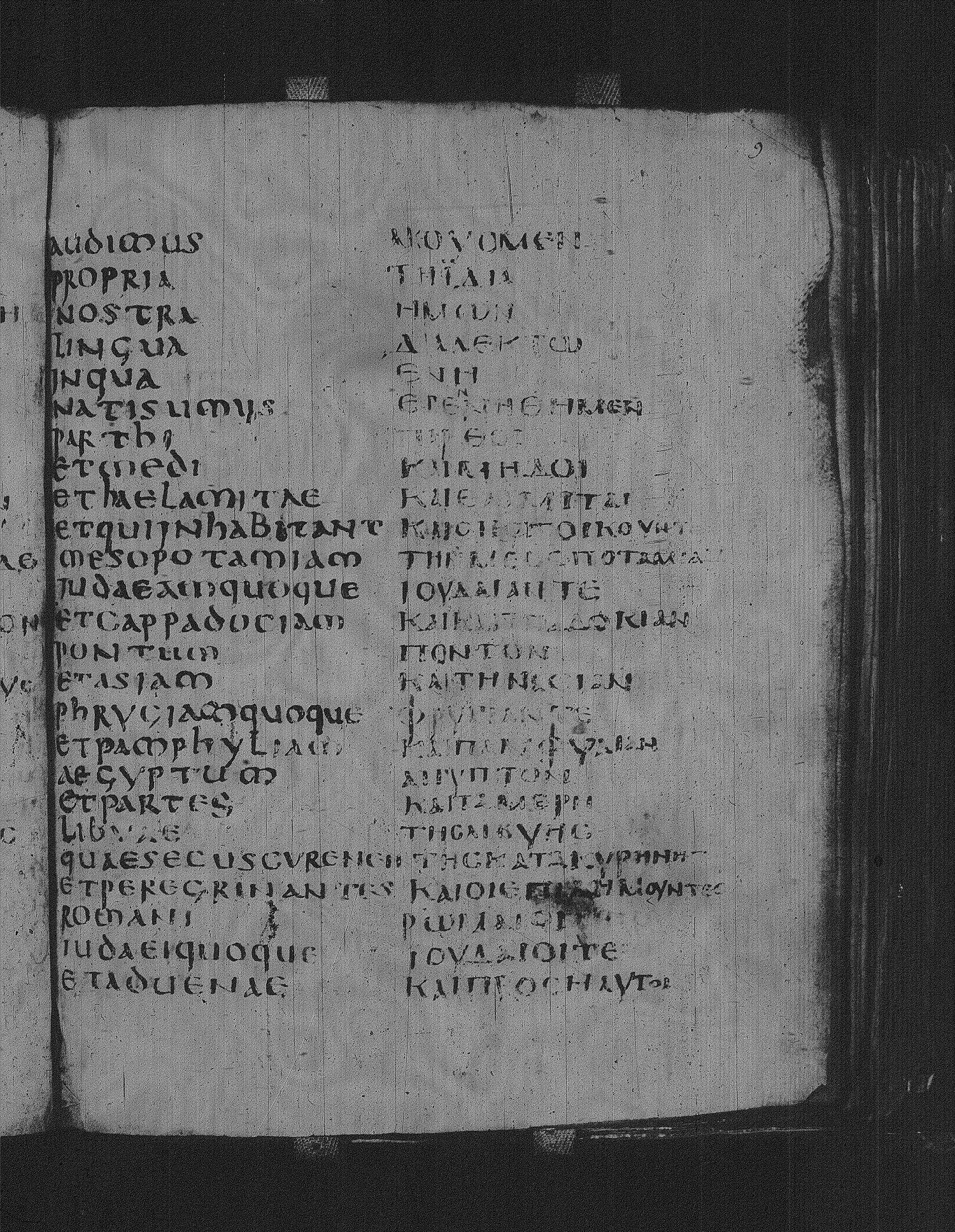 Codex Laudianus is a sixth century manuscript of the Apostolos on parchment; Greek-Latin diglot; 227 leaves, 2 columns, 24+ lines per column. For more recent images, please visit the Bodleian Library