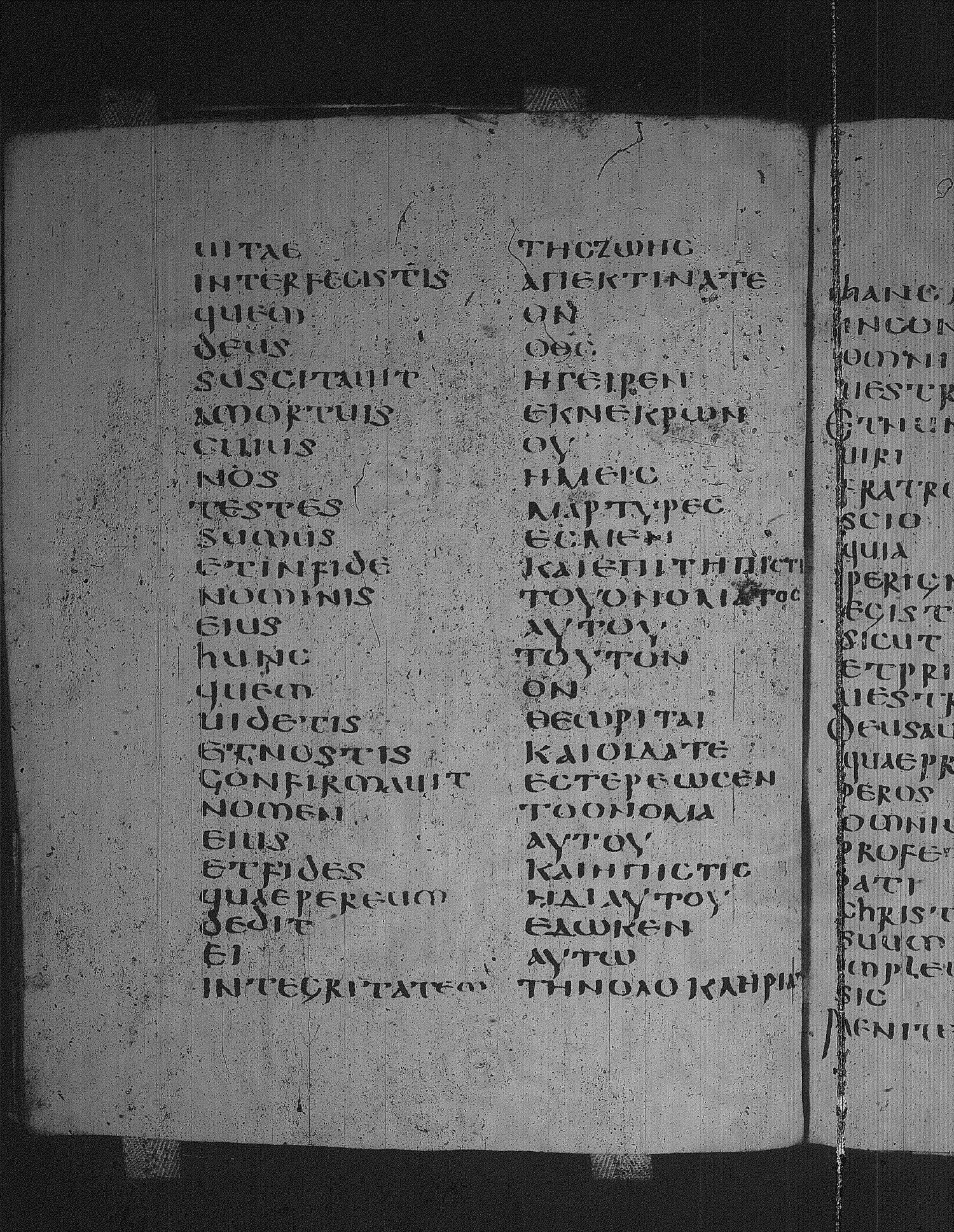 Codex Laudianus is a sixth century manuscript of the Apostolos on parchment; Greek-Latin diglot; 227 leaves, 2 columns, 24+ lines per column. For more recent images, please visit the Bodleian Library
