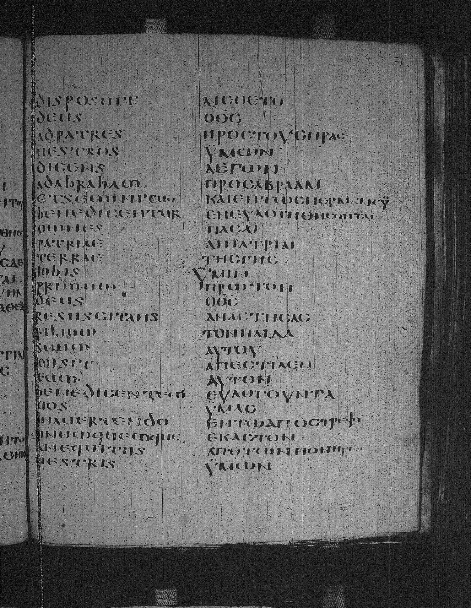 Codex Laudianus is a sixth century manuscript of the Apostolos on parchment; Greek-Latin diglot; 227 leaves, 2 columns, 24+ lines per column. For more recent images, please visit the Bodleian Library