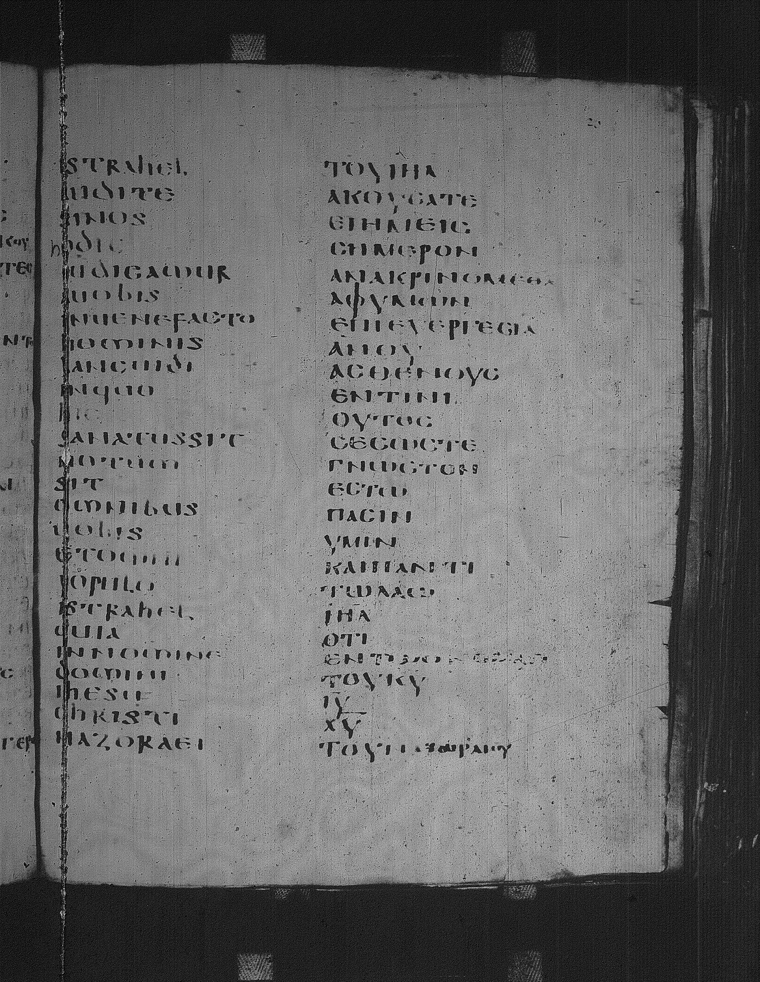 Codex Laudianus is a sixth century manuscript of the Apostolos on parchment; Greek-Latin diglot; 227 leaves, 2 columns, 24+ lines per column. For more recent images, please visit the Bodleian Library