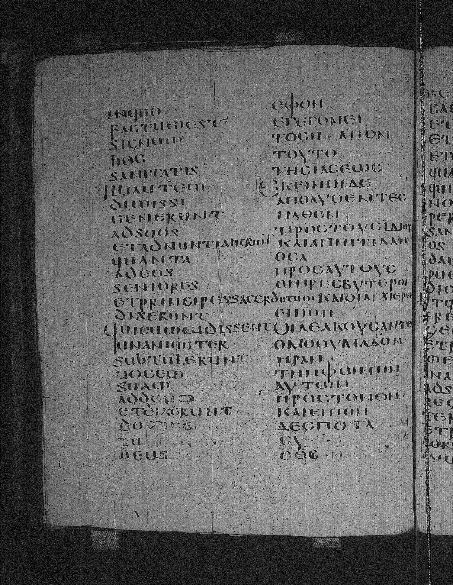 Codex Laudianus is a sixth century manuscript of the Apostolos on parchment; Greek-Latin diglot; 227 leaves, 2 columns, 24+ lines per column. For more recent images, please visit the Bodleian Library