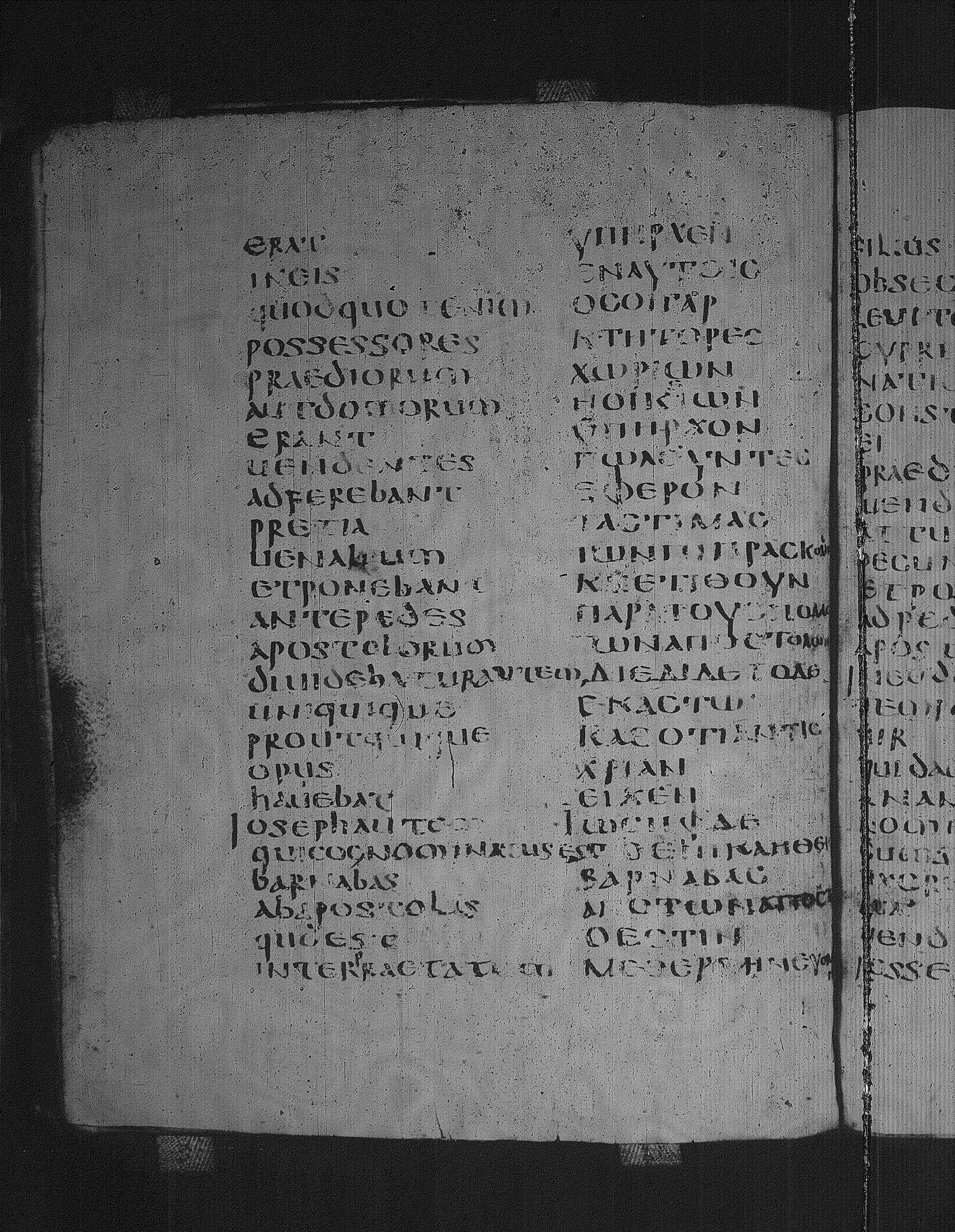 Codex Laudianus is a sixth century manuscript of the Apostolos on parchment; Greek-Latin diglot; 227 leaves, 2 columns, 24+ lines per column. For more recent images, please visit the Bodleian Library
