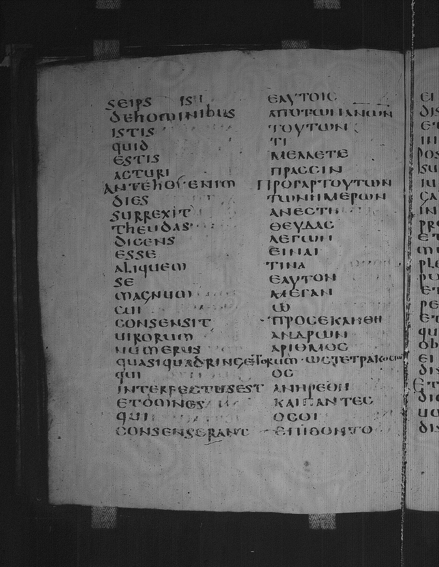 Codex Laudianus is a sixth century manuscript of the Apostolos on parchment; Greek-Latin diglot; 227 leaves, 2 columns, 24+ lines per column. For more recent images, please visit the Bodleian Library