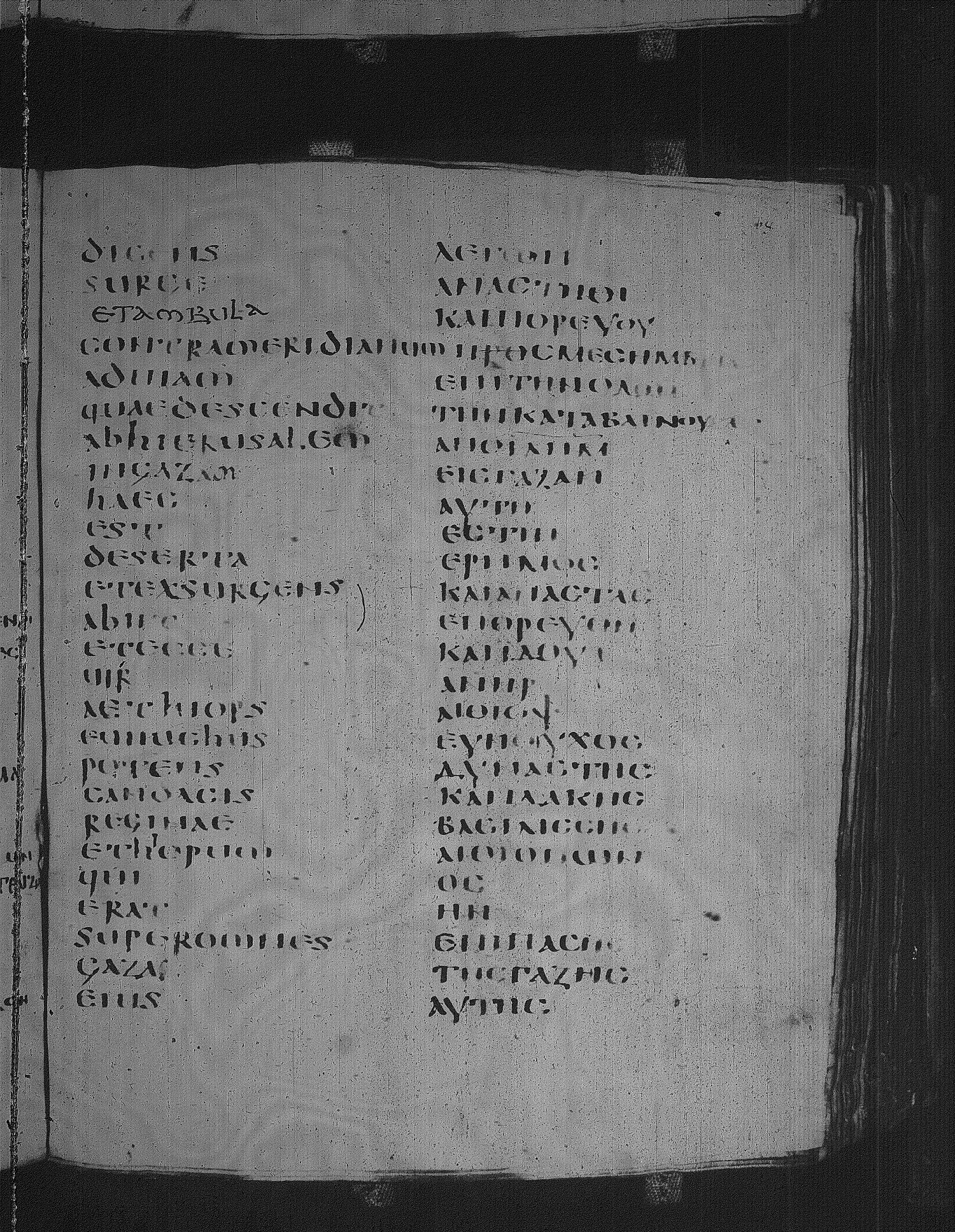 Codex Laudianus is a sixth century manuscript of the Apostolos on parchment; Greek-Latin diglot; 227 leaves, 2 columns, 24+ lines per column. For more recent images, please visit the Bodleian Library