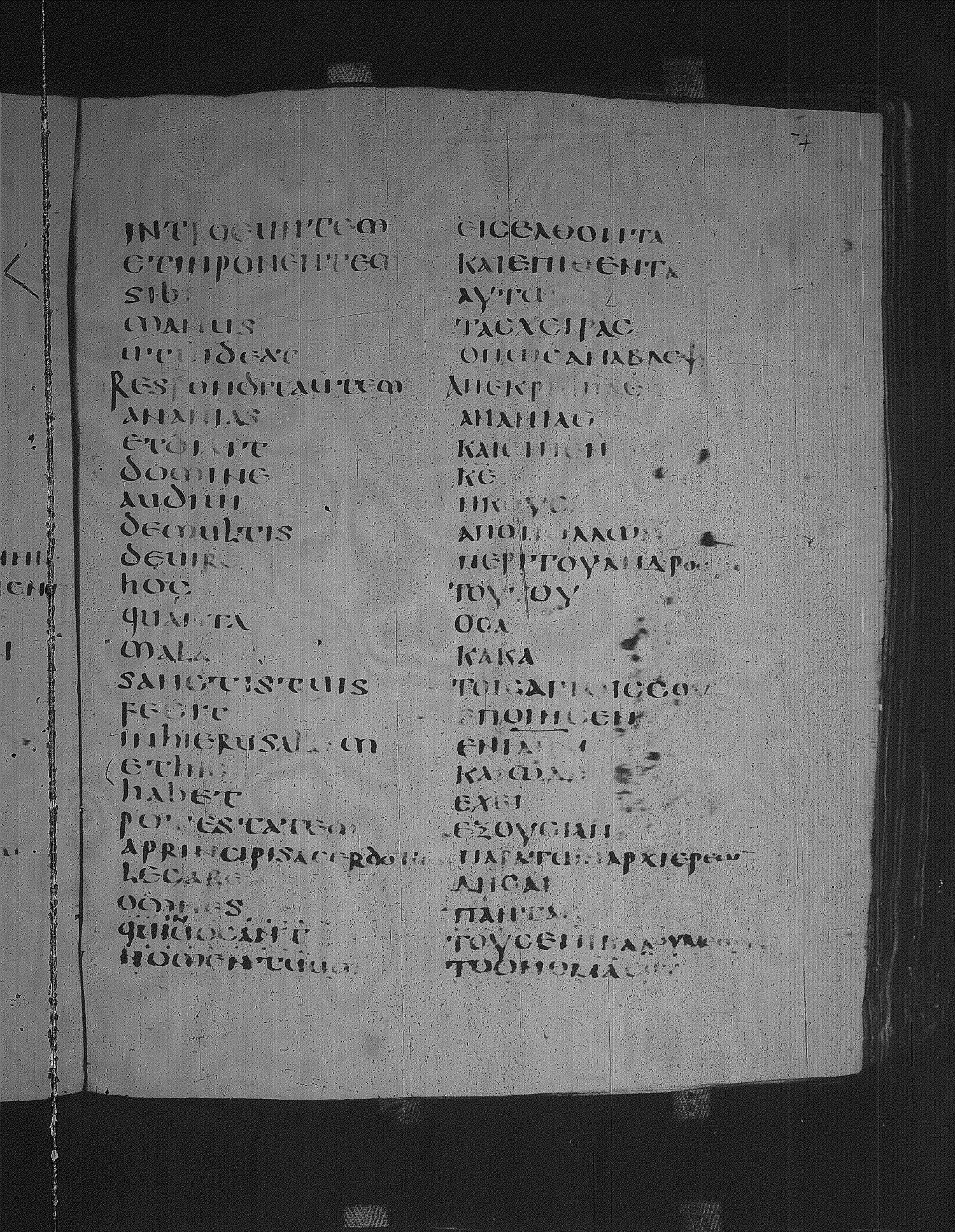 Codex Laudianus is a sixth century manuscript of the Apostolos on parchment; Greek-Latin diglot; 227 leaves, 2 columns, 24+ lines per column. For more recent images, please visit the Bodleian Library