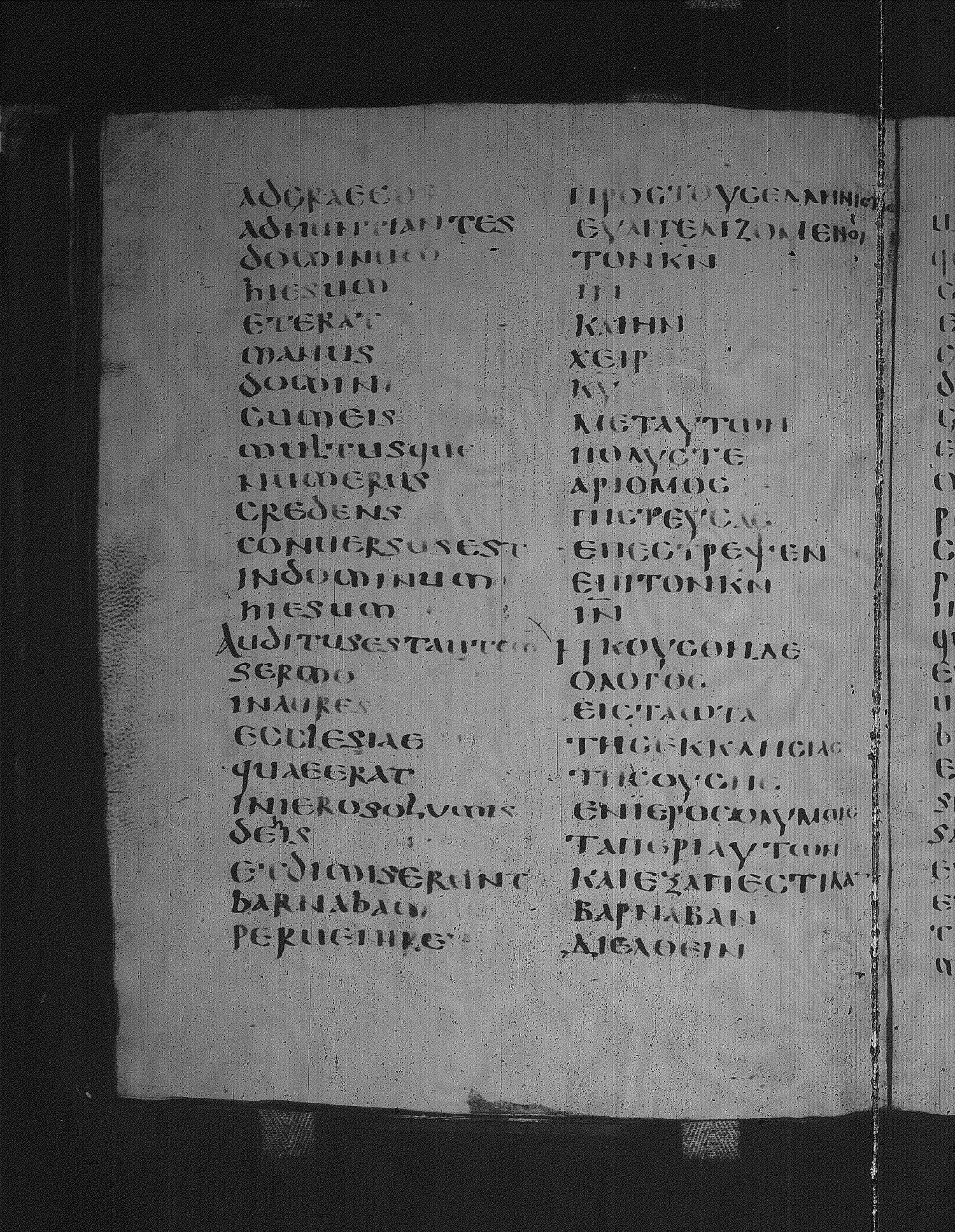 Codex Laudianus is a sixth century manuscript of the Apostolos on parchment; Greek-Latin diglot; 227 leaves, 2 columns, 24+ lines per column. For more recent images, please visit the Bodleian Library