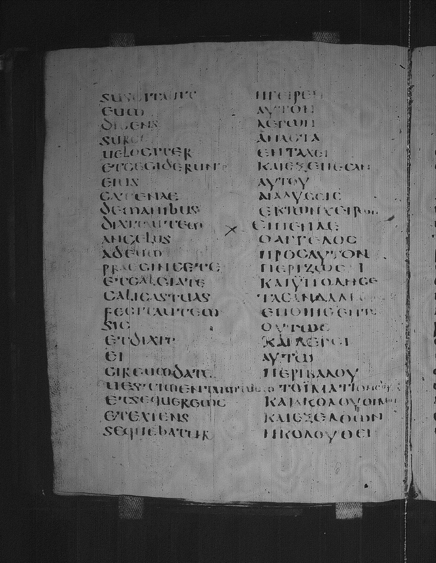 Codex Laudianus is a sixth century manuscript of the Apostolos on parchment; Greek-Latin diglot; 227 leaves, 2 columns, 24+ lines per column. For more recent images, please visit the Bodleian Library