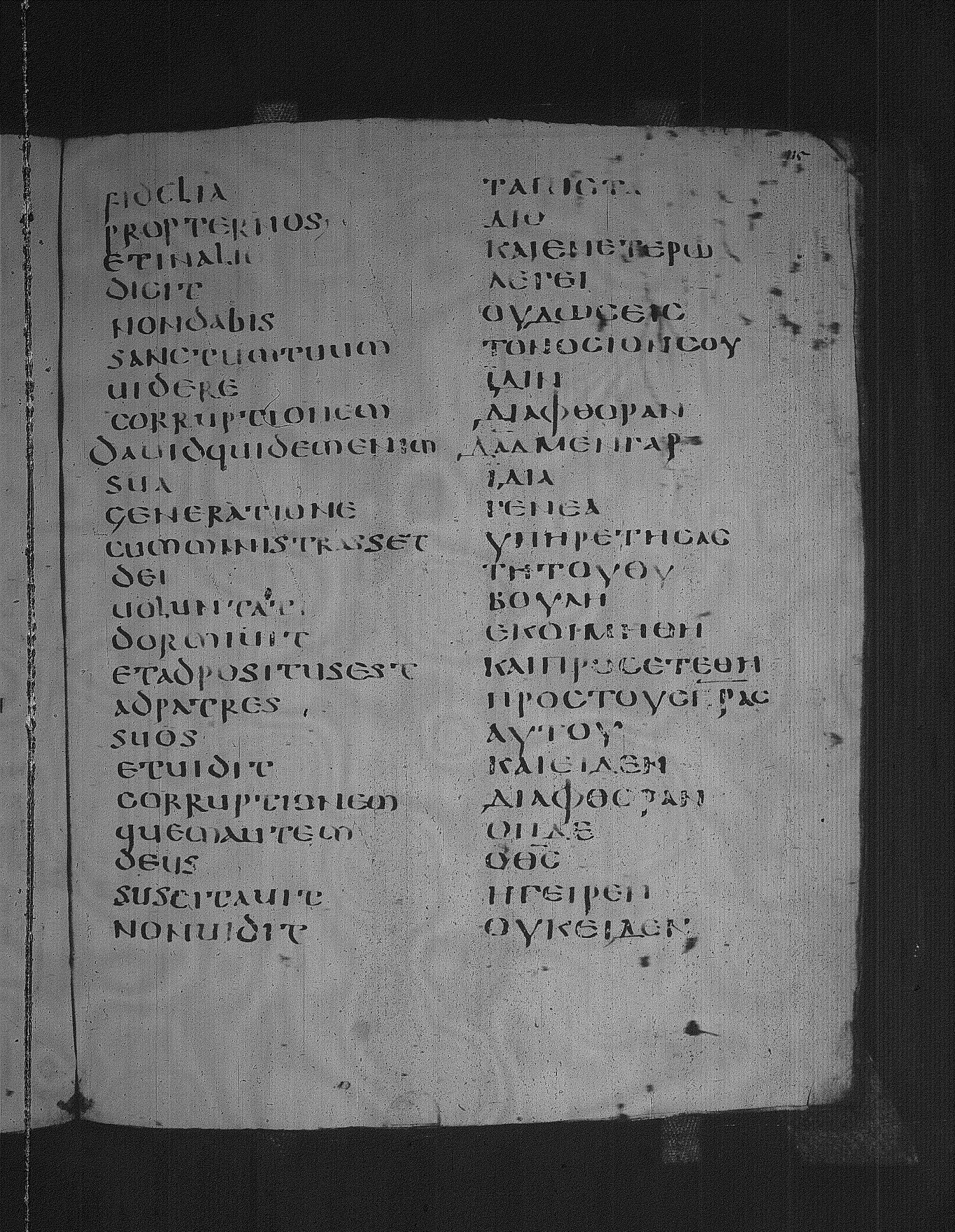 Codex Laudianus is a sixth century manuscript of the Apostolos on parchment; Greek-Latin diglot; 227 leaves, 2 columns, 24+ lines per column. For more recent images, please visit the Bodleian Library