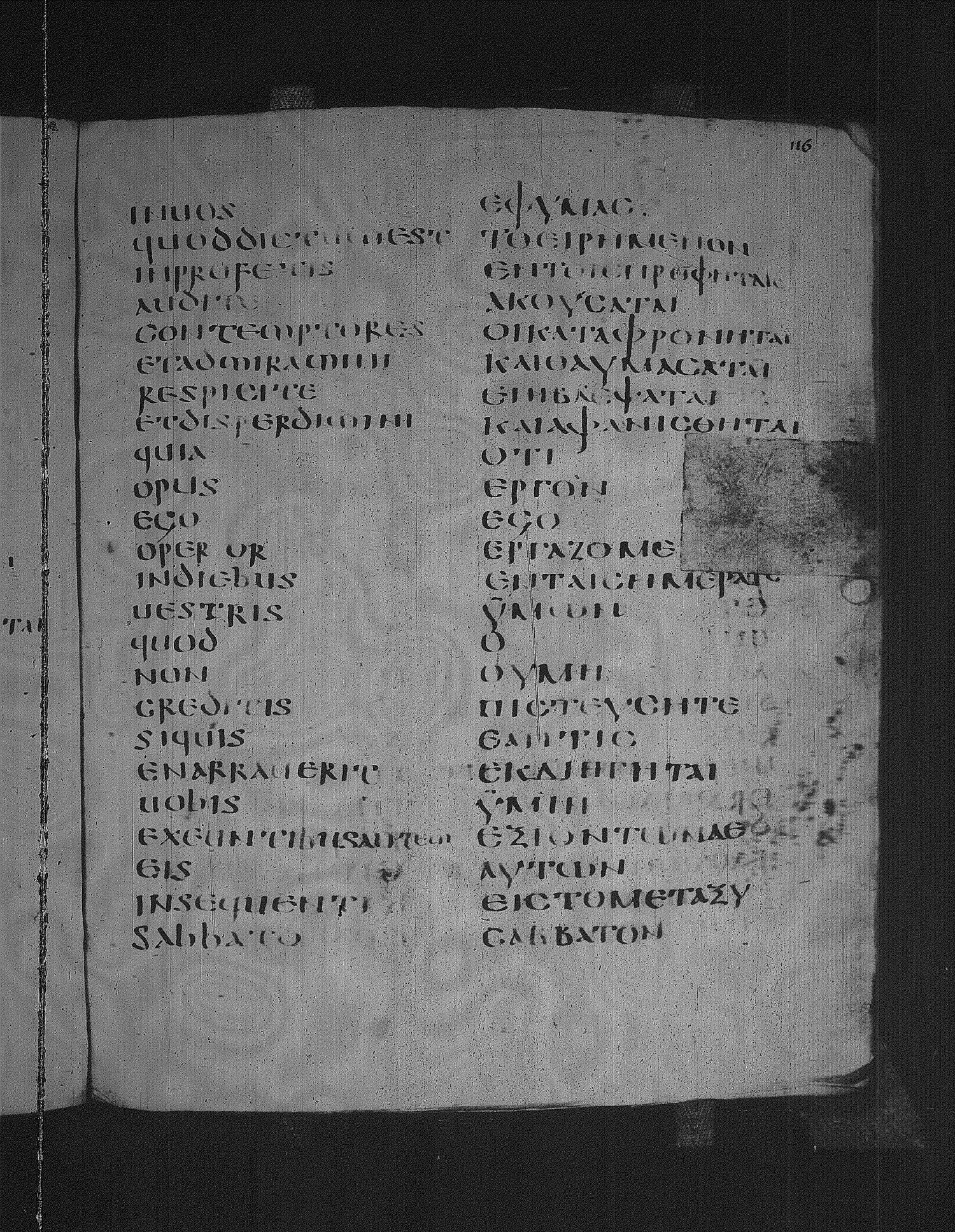 Codex Laudianus is a sixth century manuscript of the Apostolos on parchment; Greek-Latin diglot; 227 leaves, 2 columns, 24+ lines per column. For more recent images, please visit the Bodleian Library
