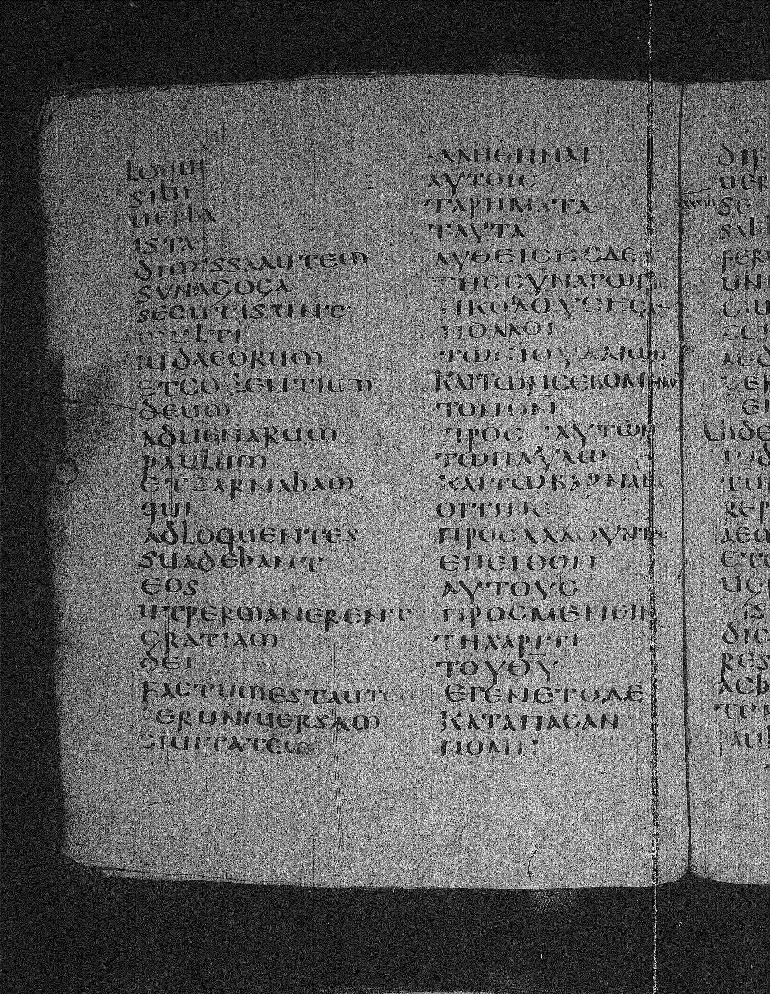 Codex Laudianus is a sixth century manuscript of the Apostolos on parchment; Greek-Latin diglot; 227 leaves, 2 columns, 24+ lines per column. For more recent images, please visit the Bodleian Library