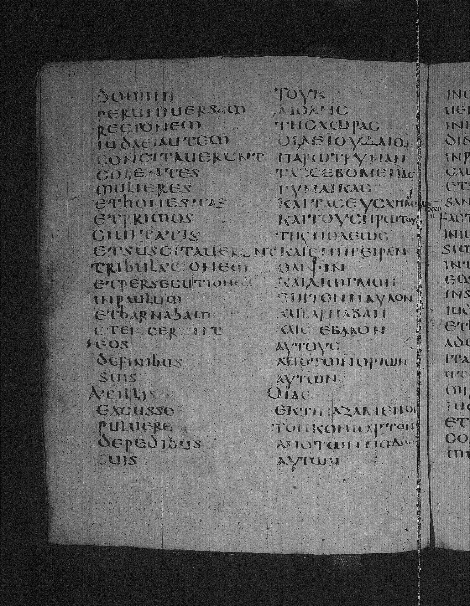 Codex Laudianus is a sixth century manuscript of the Apostolos on parchment; Greek-Latin diglot; 227 leaves, 2 columns, 24+ lines per column. For more recent images, please visit the Bodleian Library