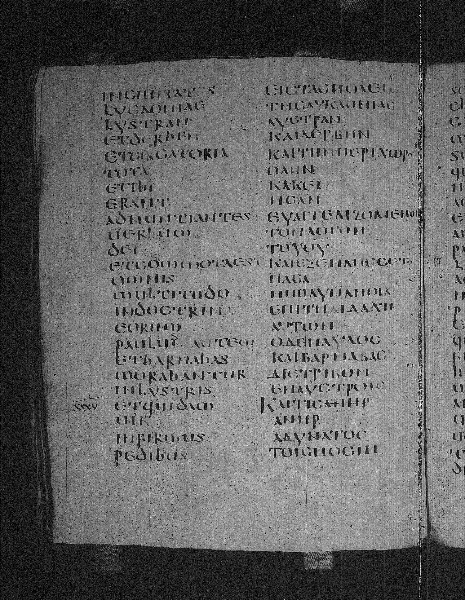 Codex Laudianus is a sixth century manuscript of the Apostolos on parchment; Greek-Latin diglot; 227 leaves, 2 columns, 24+ lines per column. For more recent images, please visit the Bodleian Library
