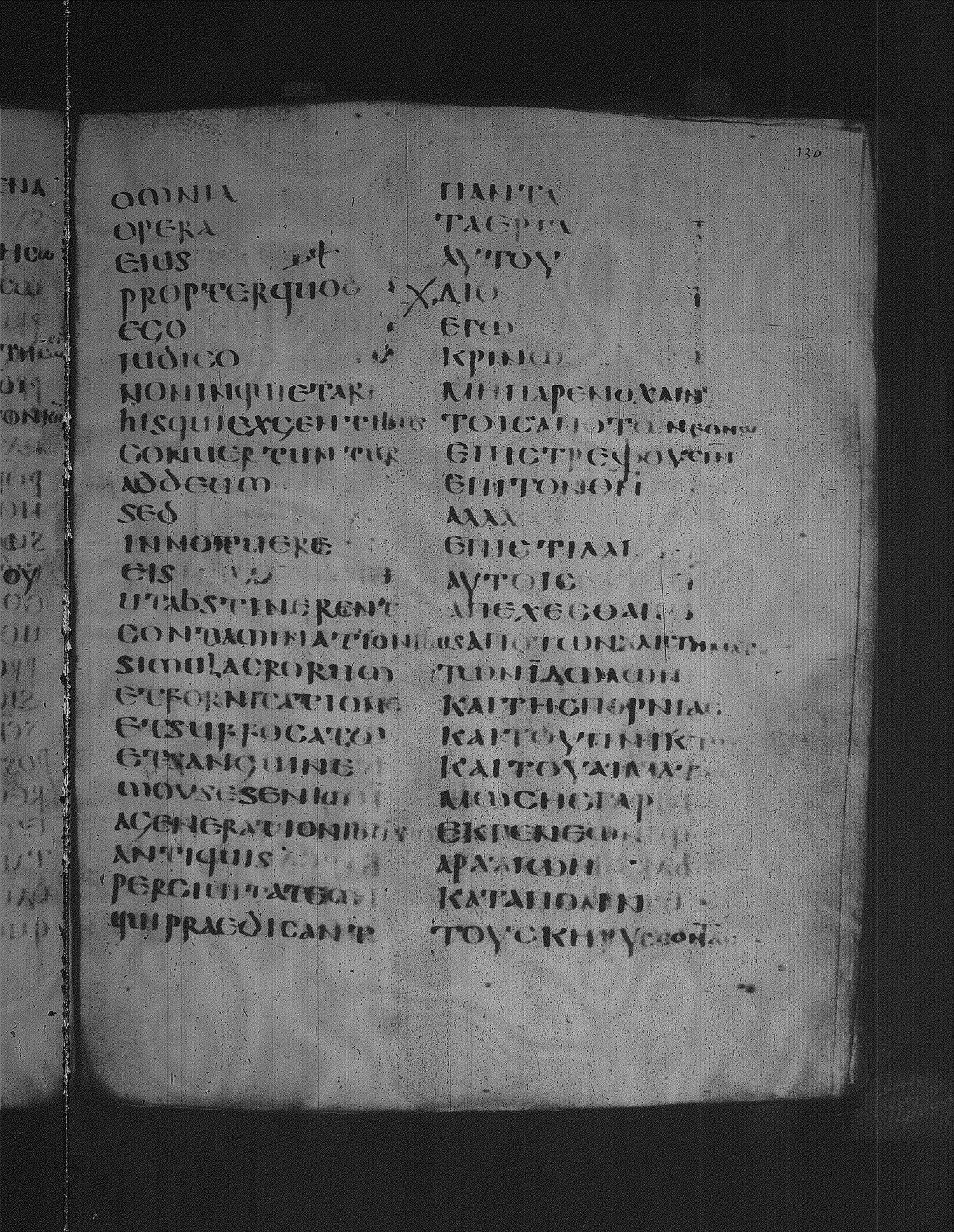 Codex Laudianus is a sixth century manuscript of the Apostolos on parchment; Greek-Latin diglot; 227 leaves, 2 columns, 24+ lines per column. For more recent images, please visit the Bodleian Library