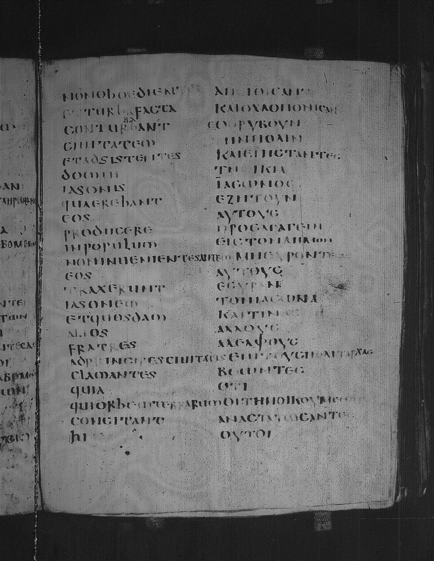 Codex Laudianus is a sixth century manuscript of the Apostolos on parchment; Greek-Latin diglot; 227 leaves, 2 columns, 24+ lines per column. For more recent images, please visit the Bodleian Library