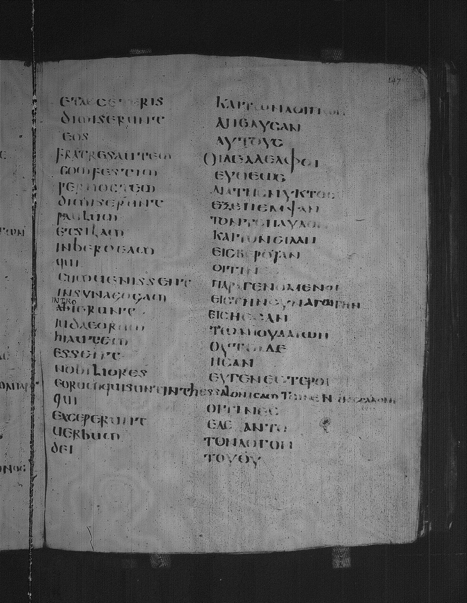 Codex Laudianus is a sixth century manuscript of the Apostolos on parchment; Greek-Latin diglot; 227 leaves, 2 columns, 24+ lines per column. For more recent images, please visit the Bodleian Library