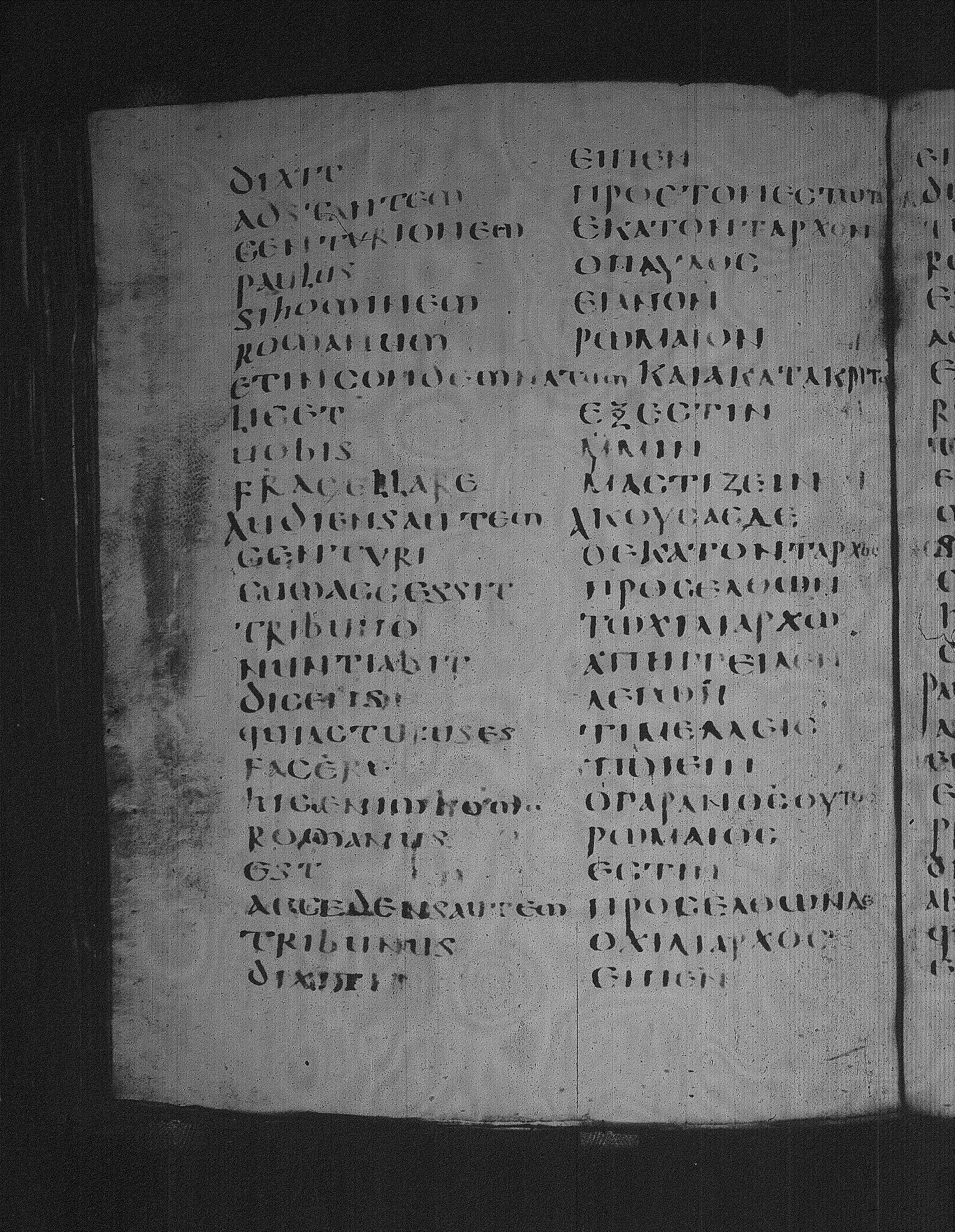 Codex Laudianus is a sixth century manuscript of the Apostolos on parchment; Greek-Latin diglot; 227 leaves, 2 columns, 24+ lines per column. For more recent images, please visit the Bodleian Library