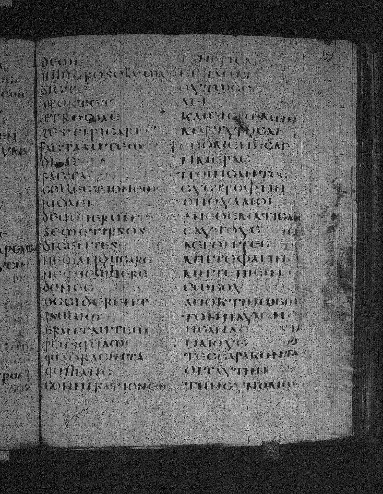 Codex Laudianus is a sixth century manuscript of the Apostolos on parchment; Greek-Latin diglot; 227 leaves, 2 columns, 24+ lines per column. For more recent images, please visit the Bodleian Library