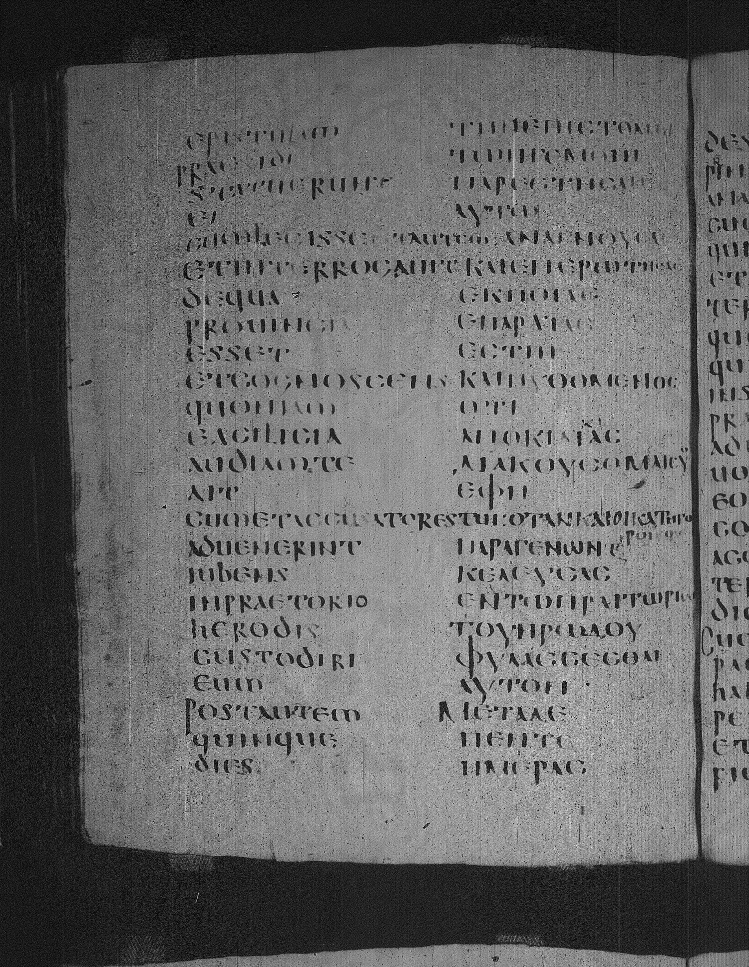 Codex Laudianus is a sixth century manuscript of the Apostolos on parchment; Greek-Latin diglot; 227 leaves, 2 columns, 24+ lines per column. For more recent images, please visit the Bodleian Library