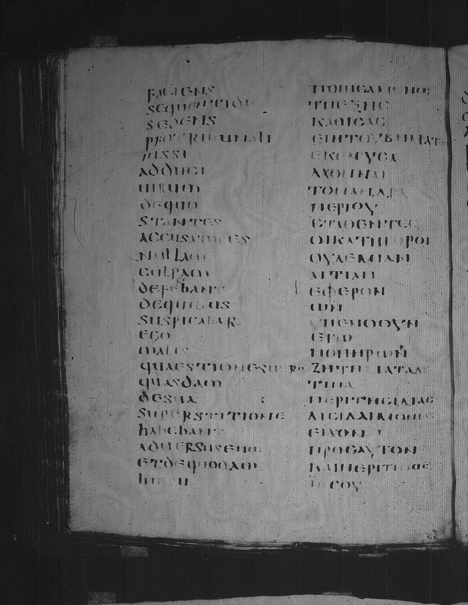 Codex Laudianus is a sixth century manuscript of the Apostolos on parchment; Greek-Latin diglot; 227 leaves, 2 columns, 24+ lines per column. For more recent images, please visit the Bodleian Library