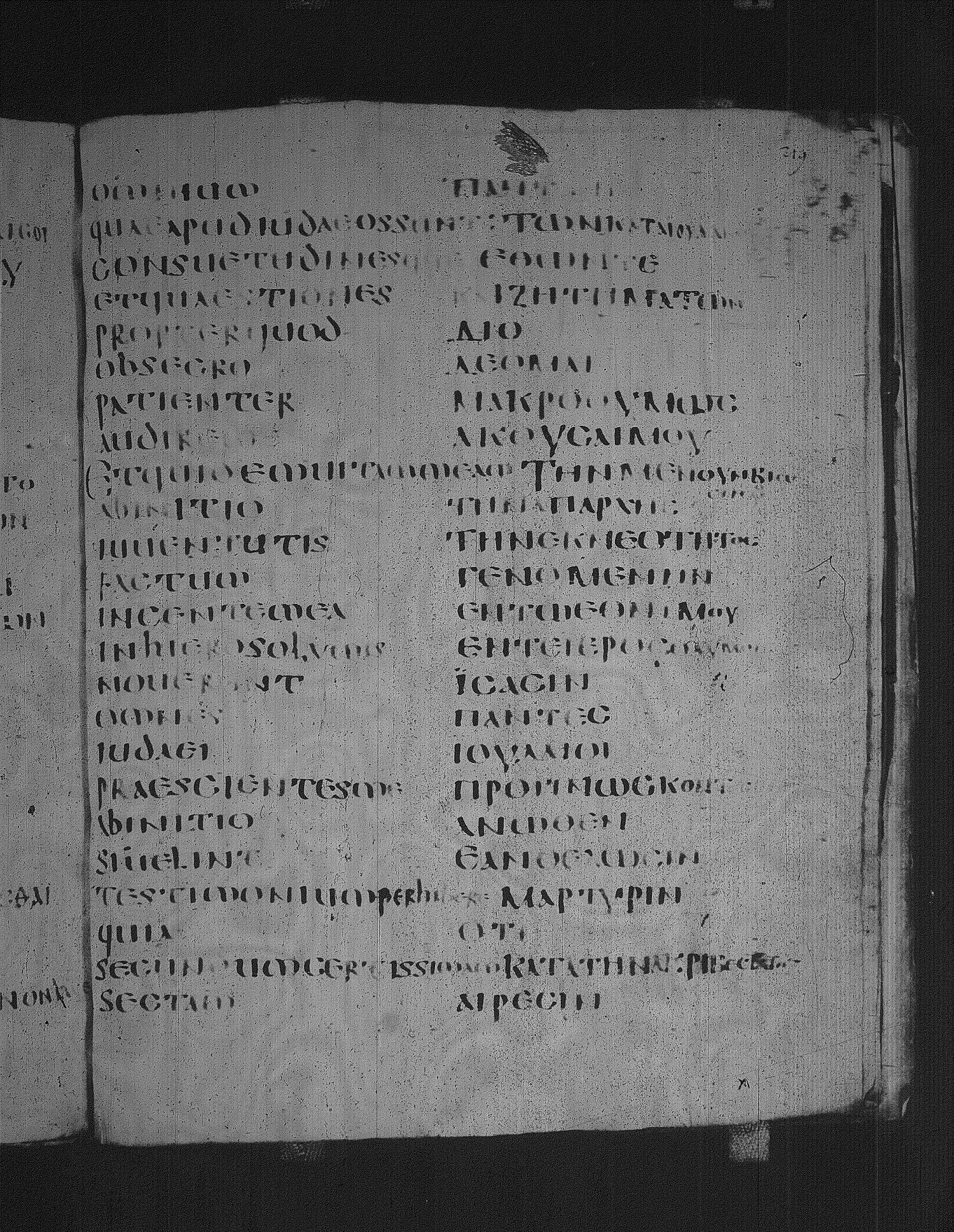 Codex Laudianus is a sixth century manuscript of the Apostolos on parchment; Greek-Latin diglot; 227 leaves, 2 columns, 24+ lines per column. For more recent images, please visit the Bodleian Library