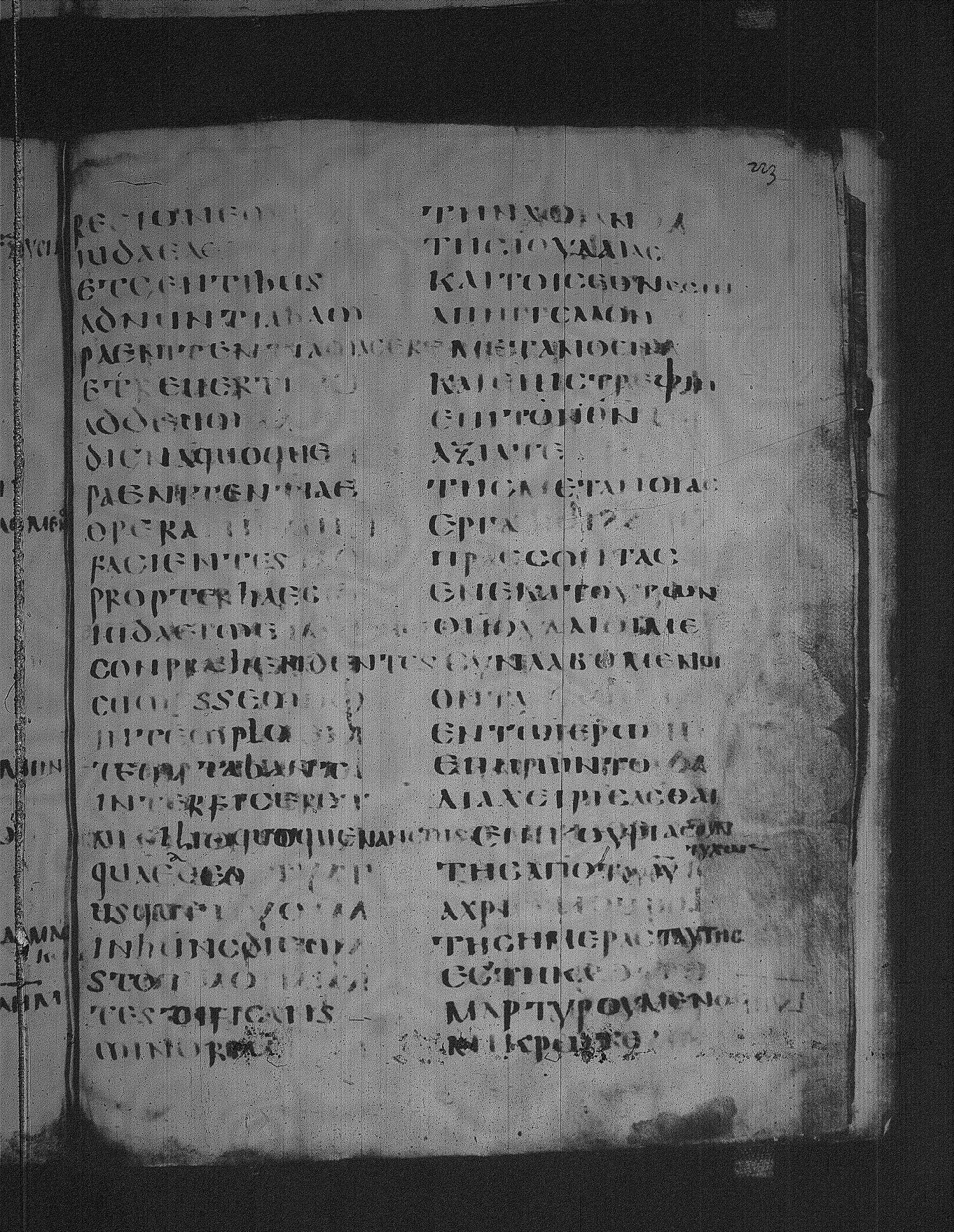 Codex Laudianus is a sixth century manuscript of the Apostolos on parchment; Greek-Latin diglot; 227 leaves, 2 columns, 24+ lines per column. For more recent images, please visit the Bodleian Library