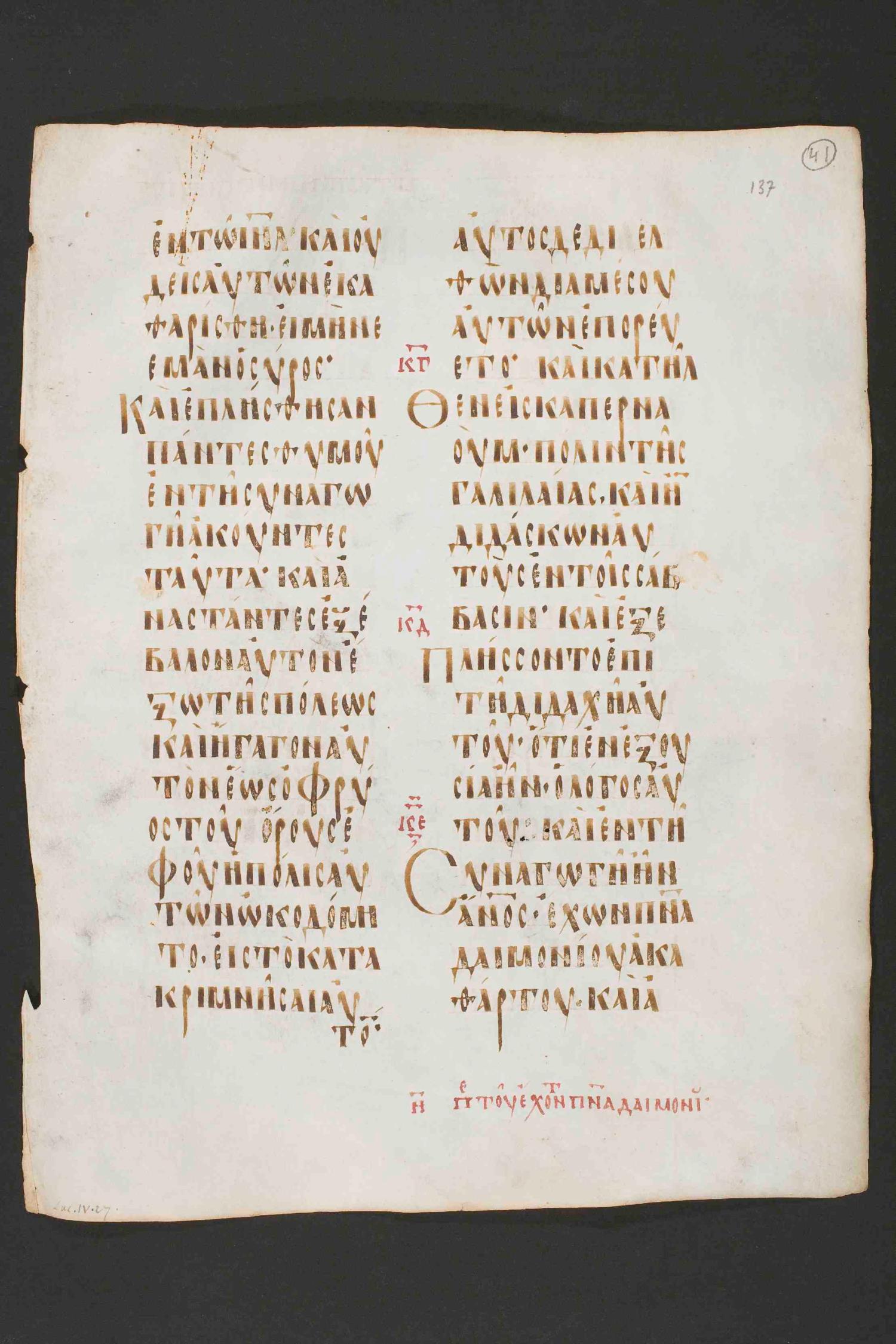 Codex Boreelianus is a tenth century majuscule of the Gospels on parchment; 219 leaves, 2 columns, 19-22 lines per column. For recent digital images, please visit the Utrecht University Library.