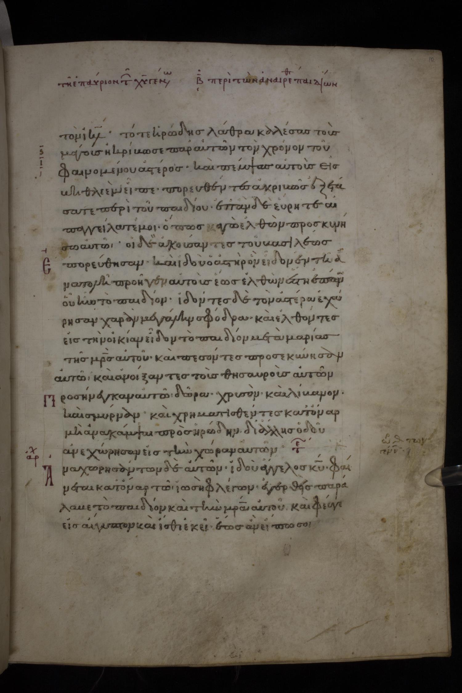 Eleventh or twelfth century minuscule of the Gospels on parchment; 212 leaves, single column, 22 lines per column. Images are from the Chester Beatty Collection.