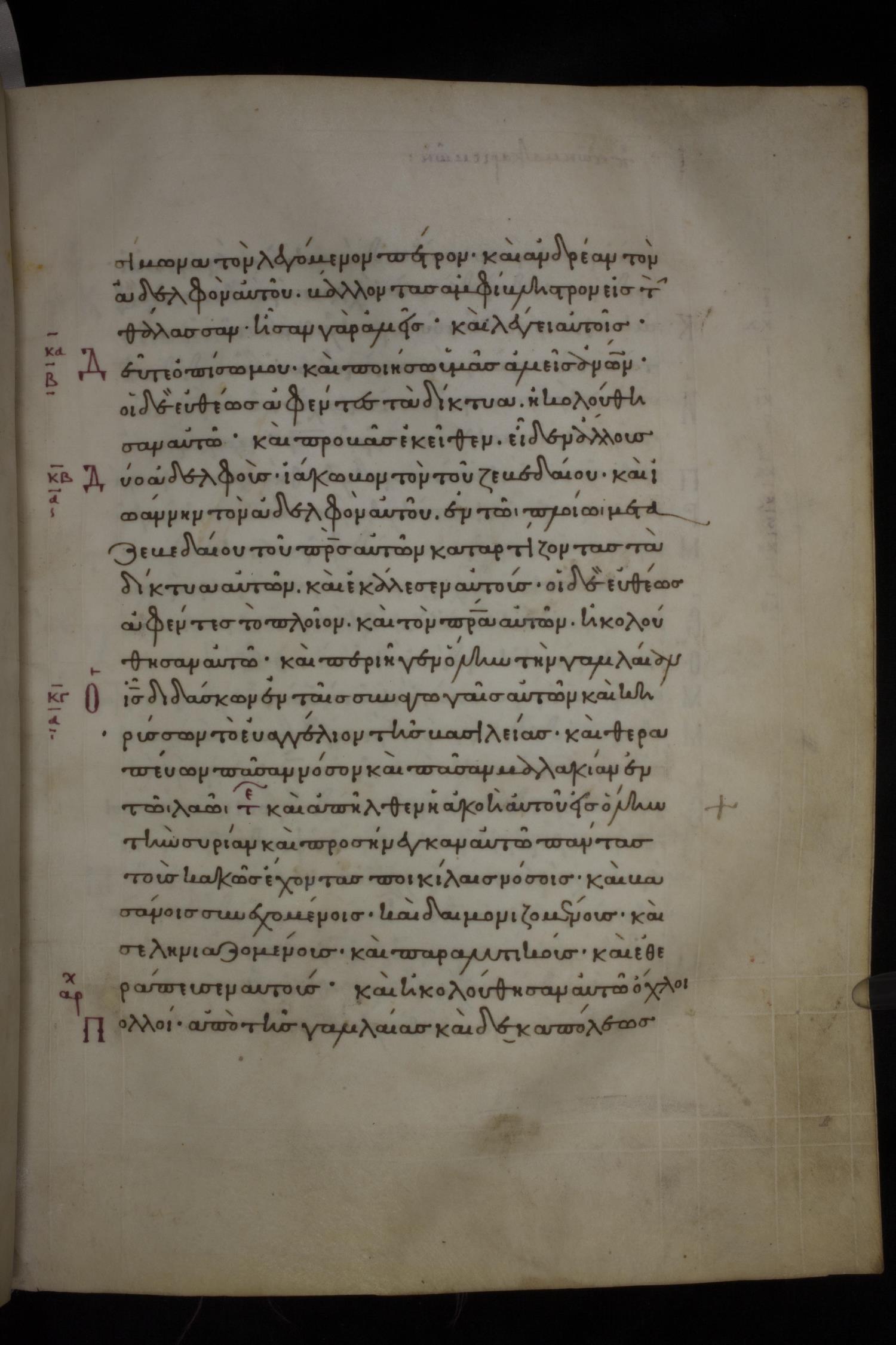 Περιπατῶν δὲ παρὰ τὴν θάλασσαν τῆς Γαλιλαίας εἶδεν δύο ἀδελφούς, Σίμωνα τὸν λεγόμενον Πέτρον καὶ Ἀνδρέαν τὸν ἀδελφὸν αὐτοῦ, βάλλοντας ἀμφίβληστρον εἰς τὴν θάλασσαν, ἦσαν γὰρ ἁλεεῖς / ἁλιεῖς·