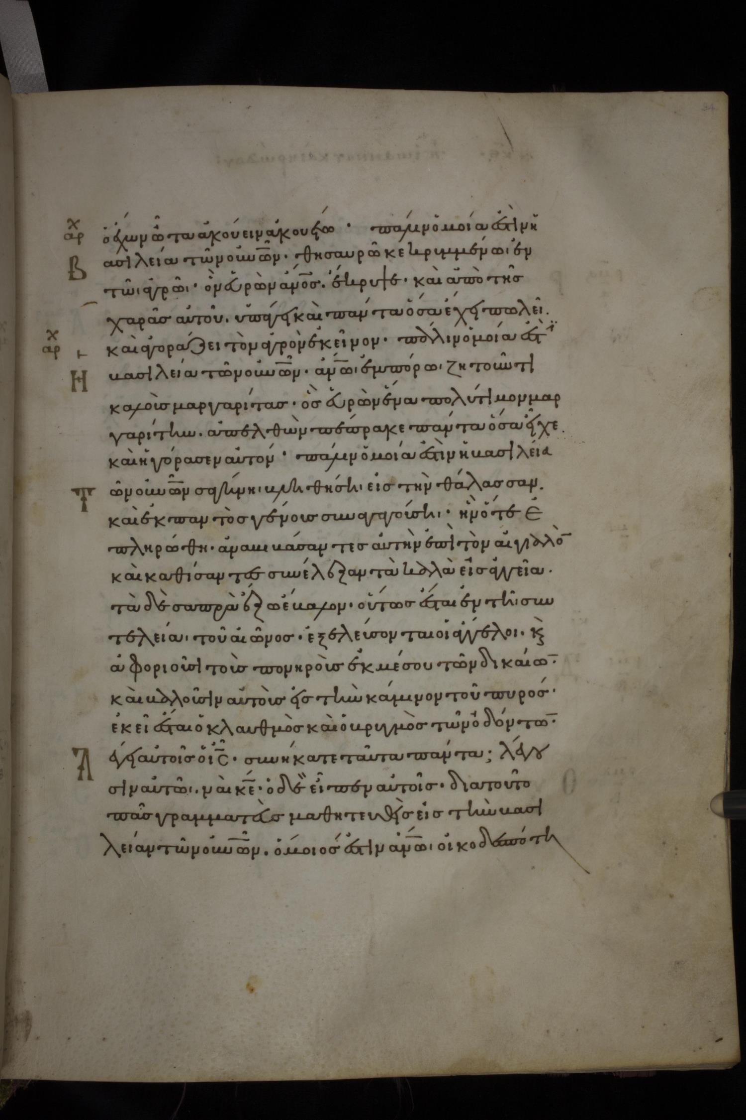 Eleventh or twelfth century minuscule of the Gospels on parchment; 212 leaves, single column, 22 lines per column. Images are from the Chester Beatty Collection.