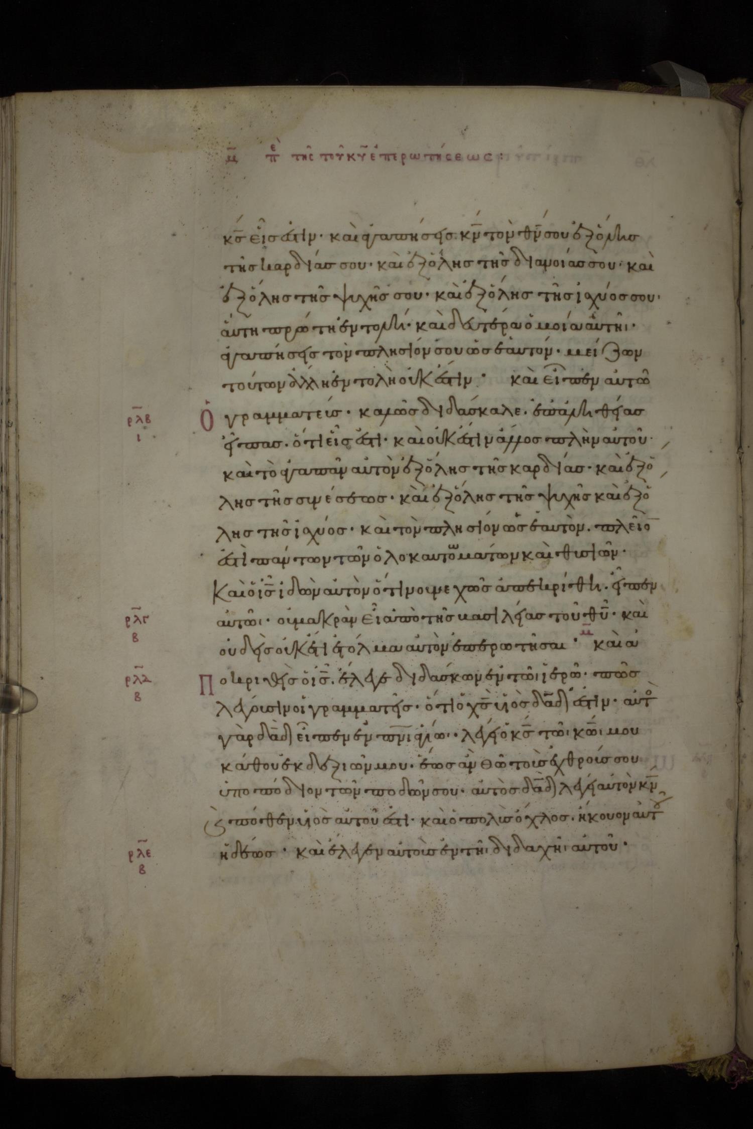 αὐτὸς Δαυεὶδ / Δαυὶδ λέγει αὐτὸν κύριον, καὶ πόθεν αὐτοῦ ἐστὶν υἱός; Καὶ ὁ πολὺς ὄχλος ἤκουεν αὐτοῦ ἡδέως.