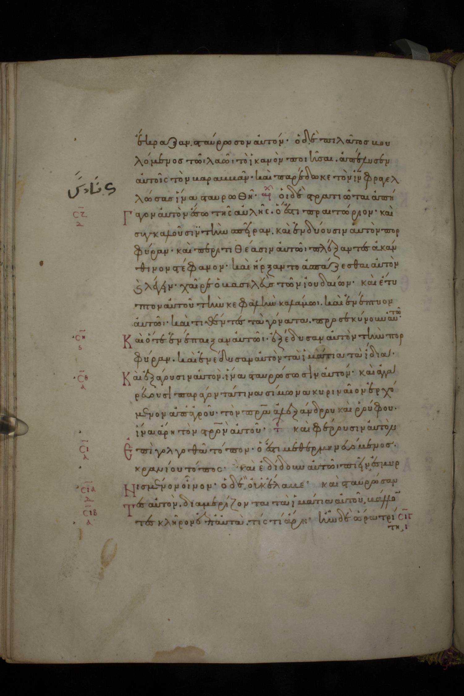 Eleventh or twelfth century minuscule of the Gospels on parchment; 212 leaves, single column, 22 lines per column. Images are from the Chester Beatty Collection.