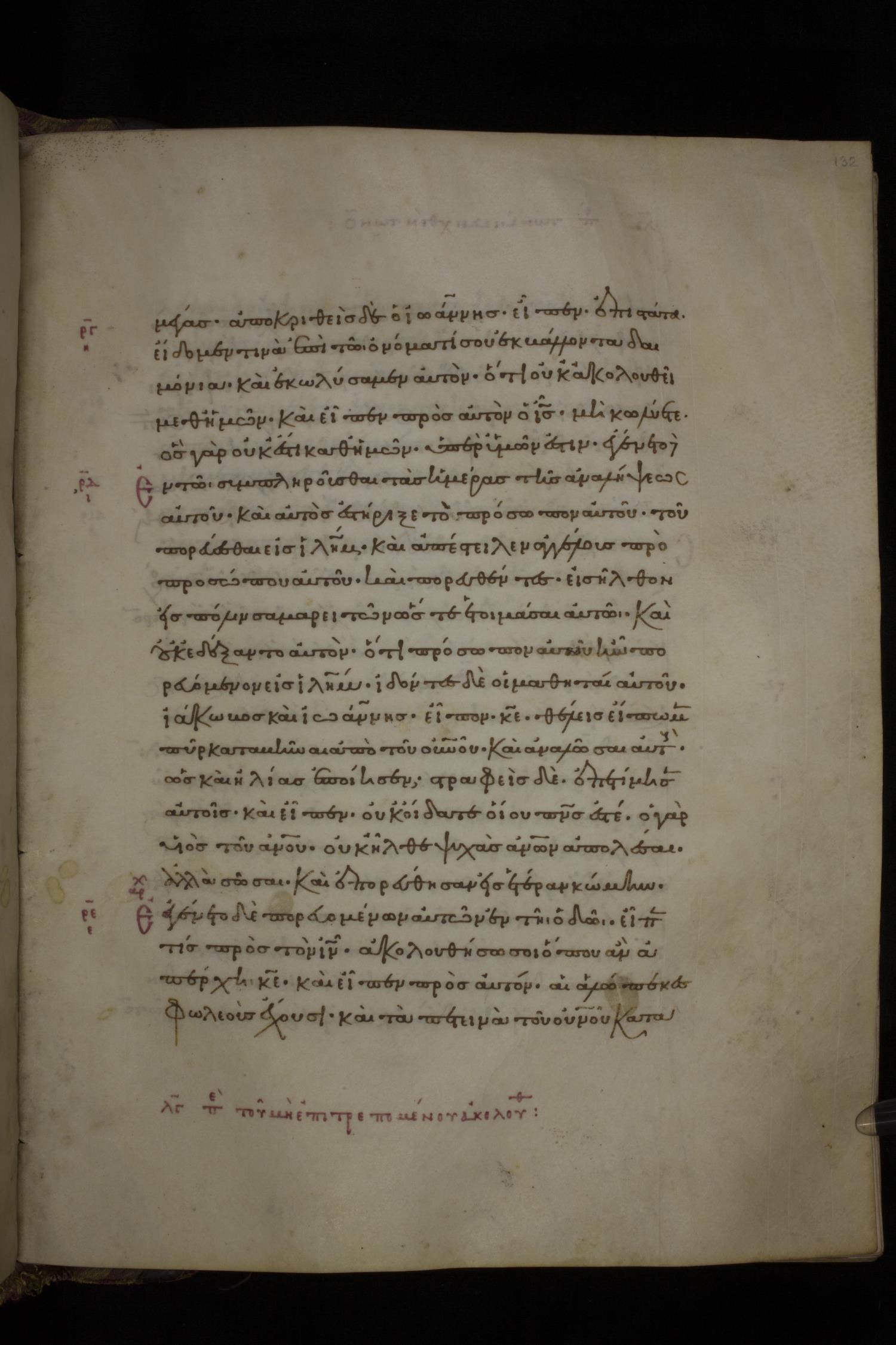 Eleventh or twelfth century minuscule of the Gospels on parchment; 212 leaves, single column, 22 lines per column. Images are from the Chester Beatty Collection.