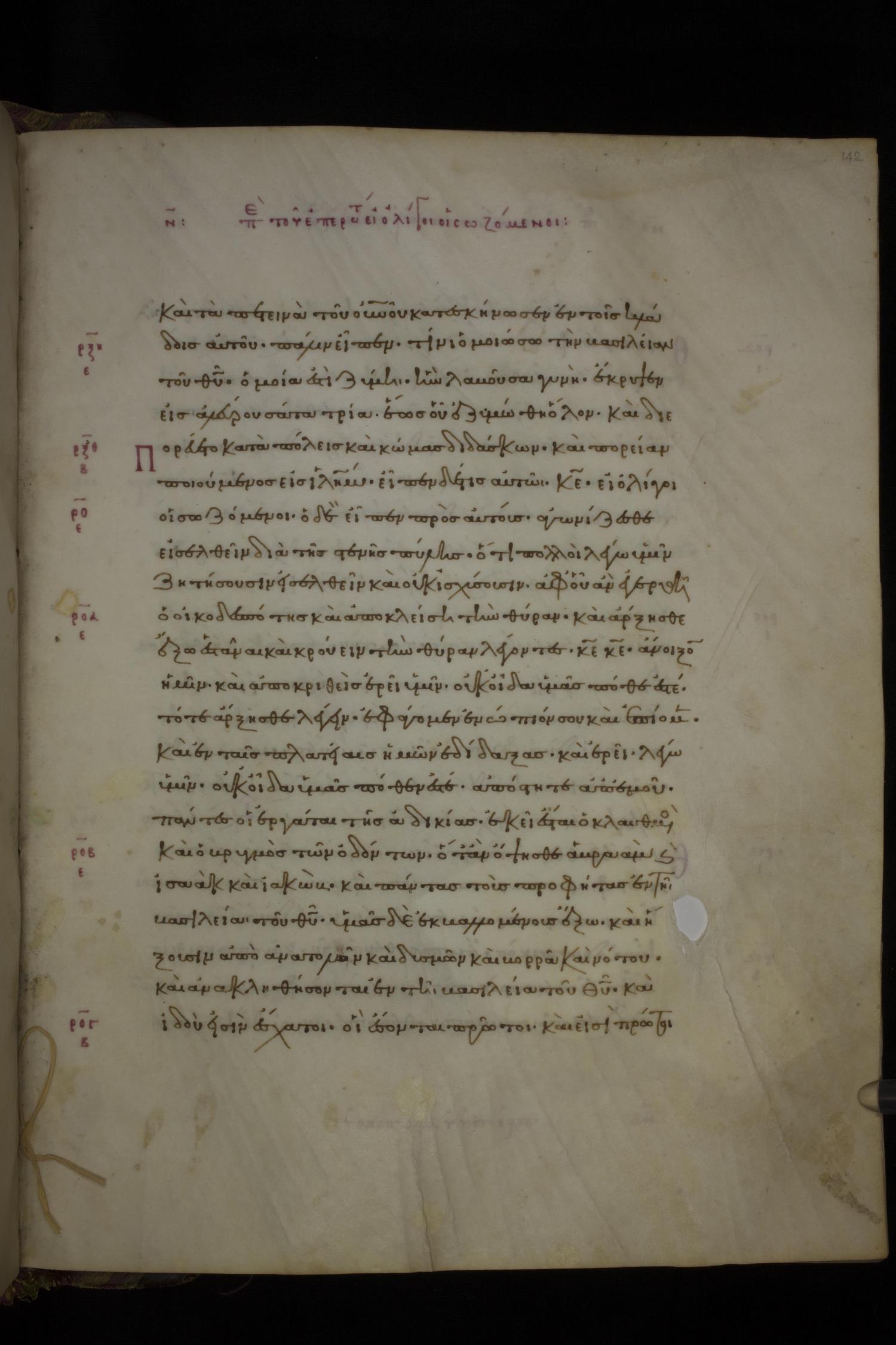 Eleventh or twelfth century minuscule of the Gospels on parchment; 212 leaves, single column, 22 lines per column. Images are from the Chester Beatty Collection.