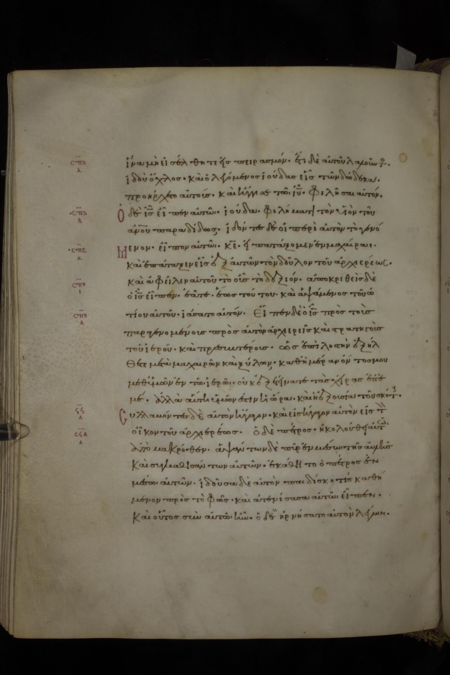 Eleventh or twelfth century minuscule of the Gospels on parchment; 212 leaves, single column, 22 lines per column. Images are from the Chester Beatty Collection.