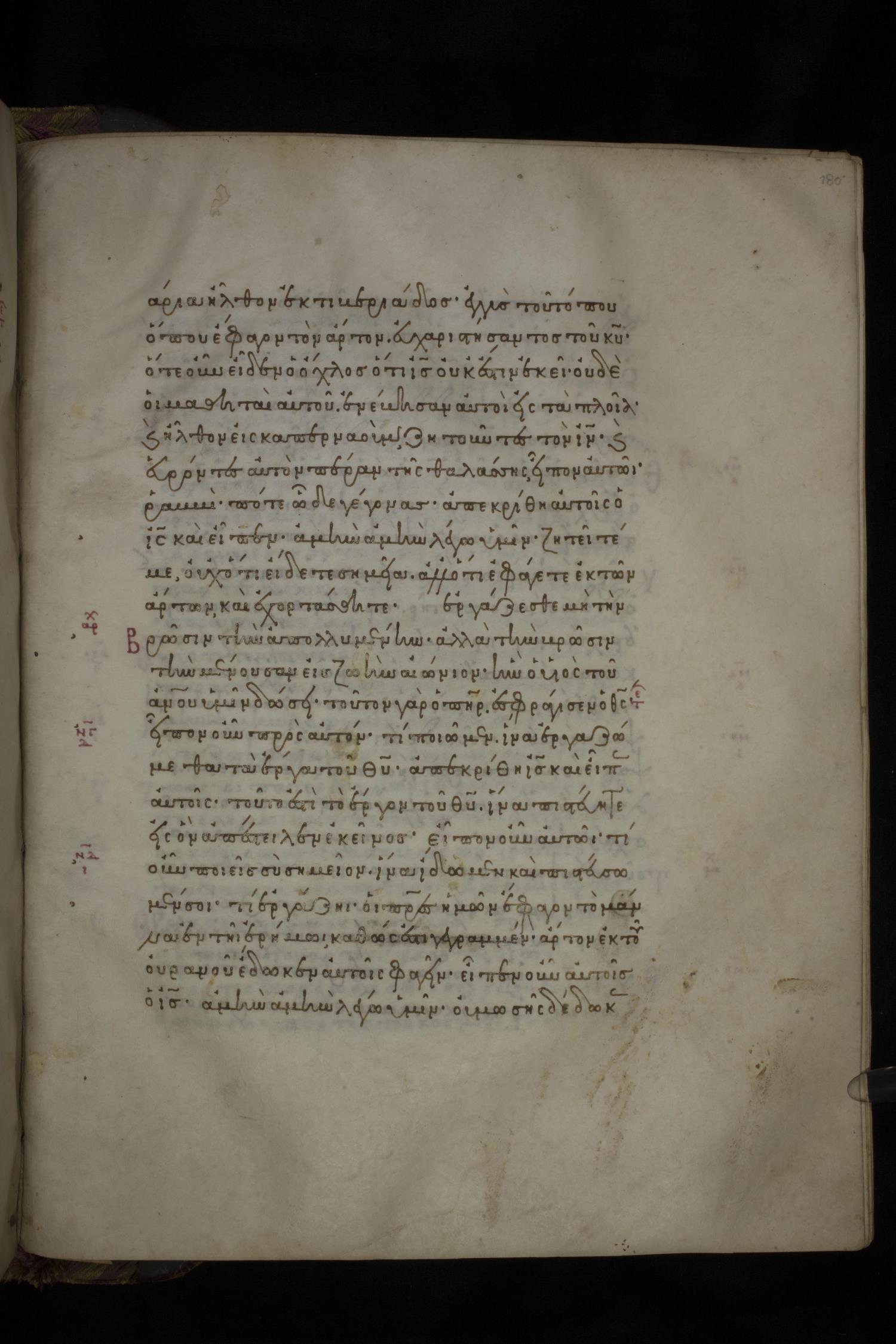 Eleventh or twelfth century minuscule of the Gospels on parchment; 212 leaves, single column, 22 lines per column. Images are from the Chester Beatty Collection.