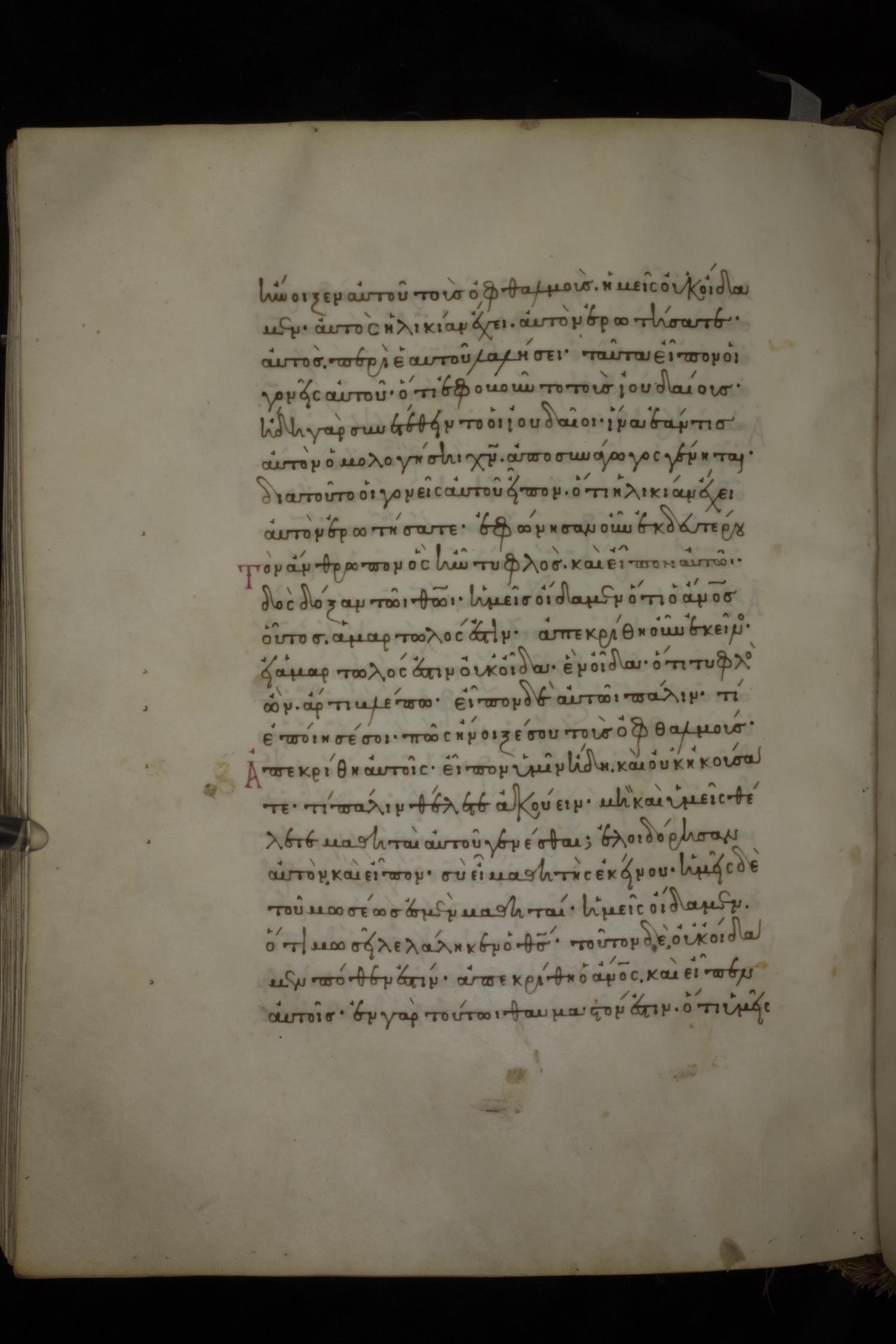πῶς δὲ νῦν βλέπει οὐκ οἴδαμεν, ἢ τίς ἤνοιξεν αὐτοῦ τοὺς ὀφθαλμοὺς ἡμεῖς οὐκ οἴδαμεν· αὐτὸν ἐρωτήσατε, ἡλικίαν ἔχει, αὐτὸς περὶ ἑαυτοῦ λαλήσει.