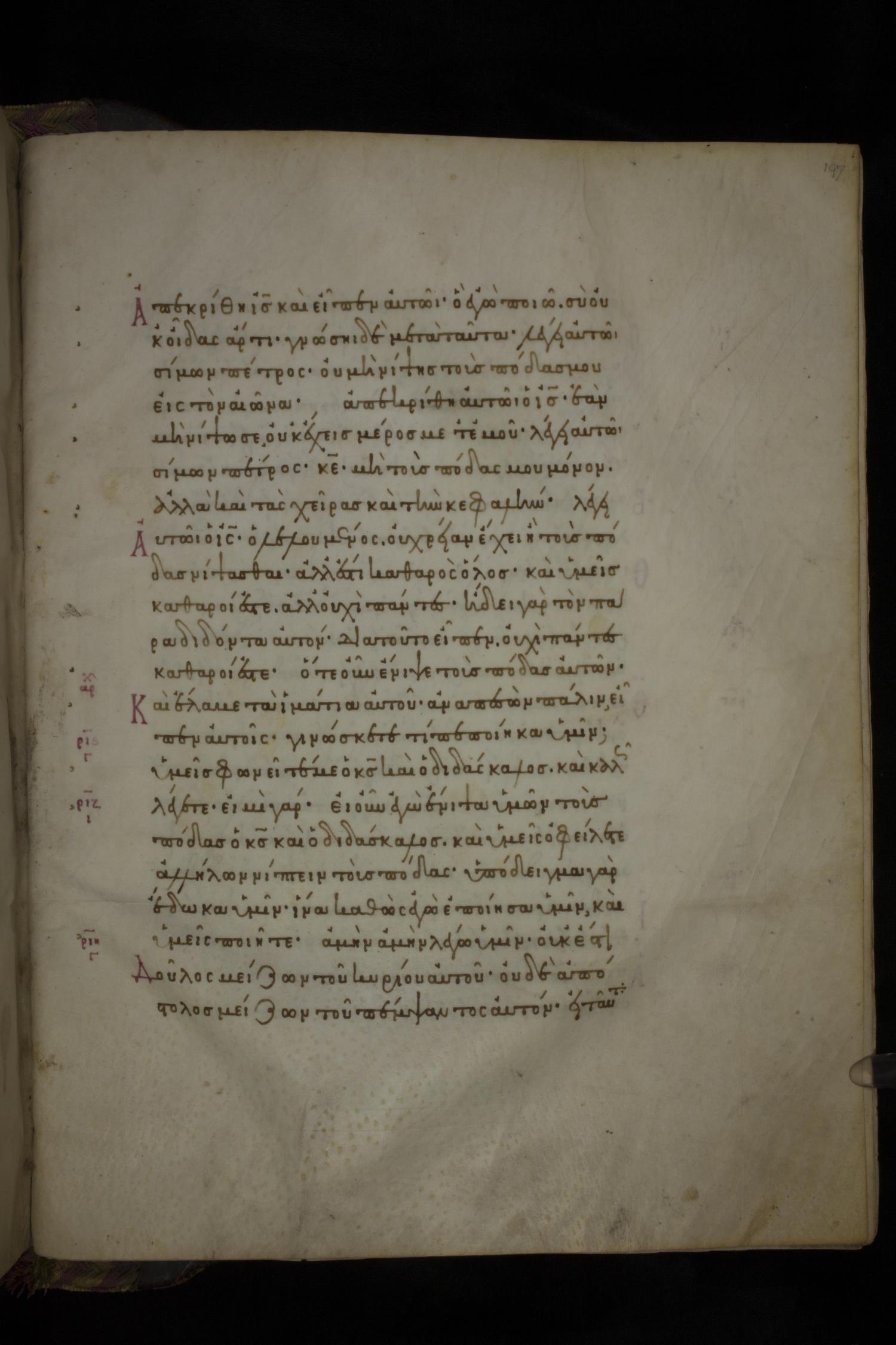 Eleventh or twelfth century minuscule of the Gospels on parchment; 212 leaves, single column, 22 lines per column. Images are from the Chester Beatty Collection.
