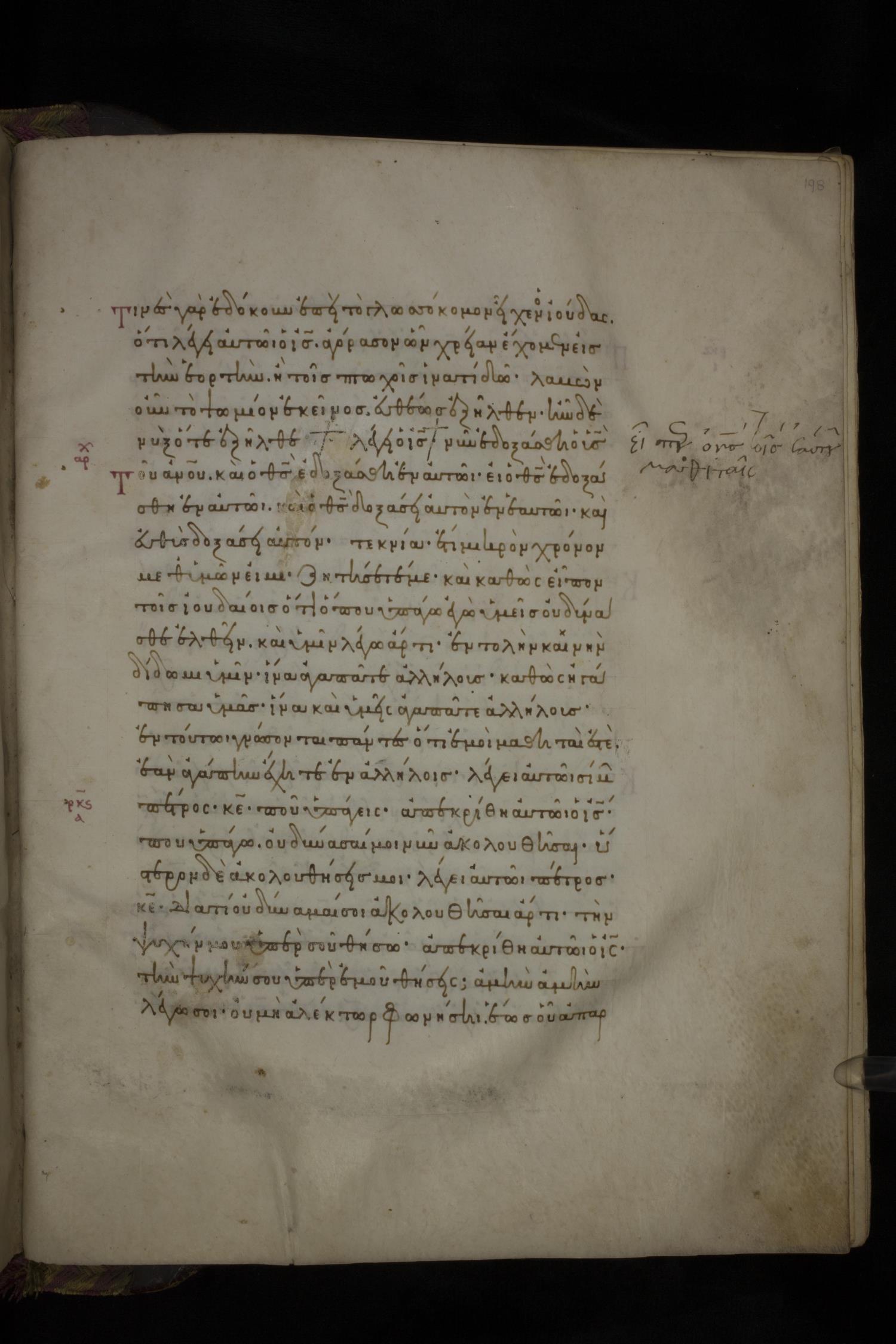 Eleventh or twelfth century minuscule of the Gospels on parchment; 212 leaves, single column, 22 lines per column. Images are from the Chester Beatty Collection.