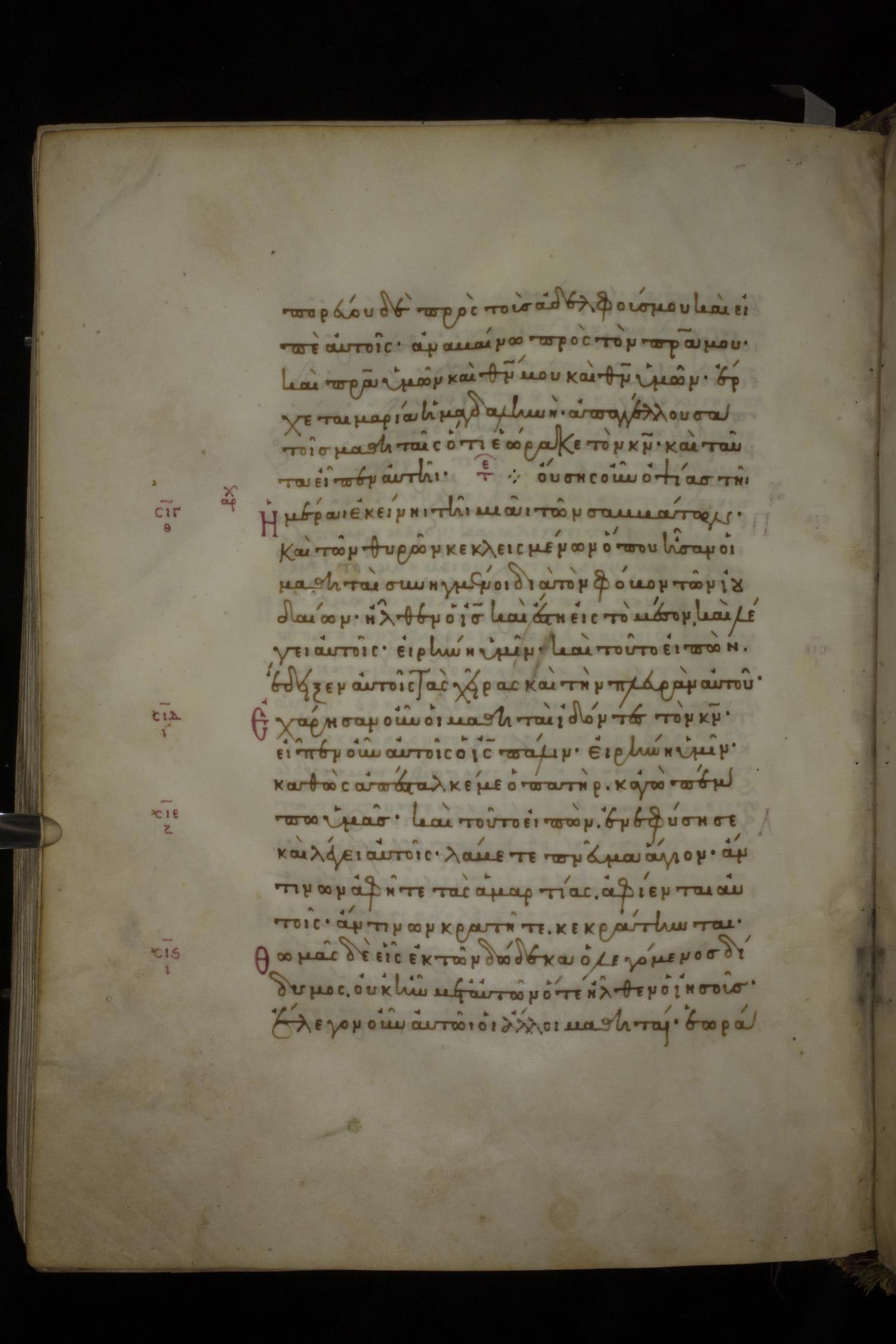 Eleventh or twelfth century minuscule of the Gospels on parchment; 212 leaves, single column, 22 lines per column. Images are from the Chester Beatty Collection.