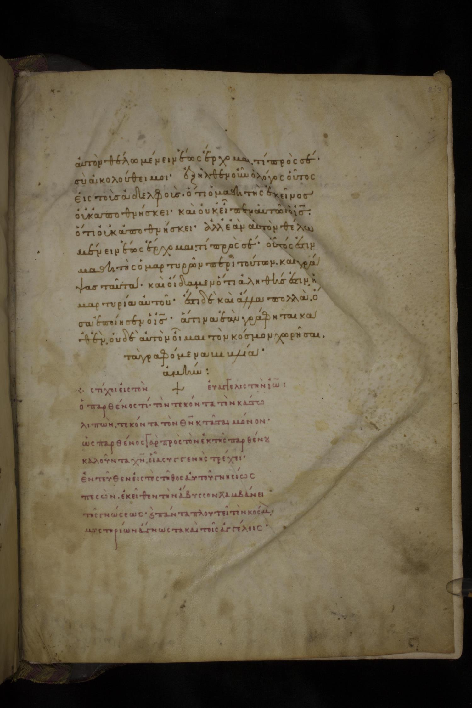 Eleventh or twelfth century minuscule of the Gospels on parchment; 212 leaves, single column, 22 lines per column. Images are from the Chester Beatty Collection.