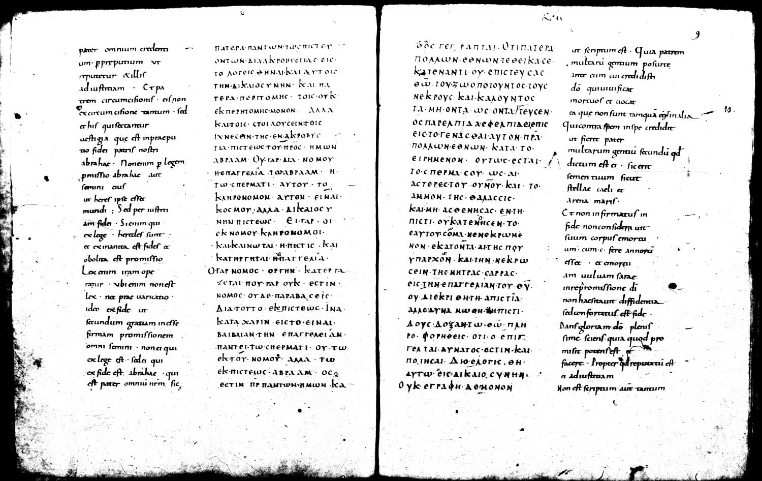 Codex Augiensis is a ninth century manuscript of Paul on parchment; Greek-Latin diglot; 136 leaves, 2 columns, 28 lines per column.