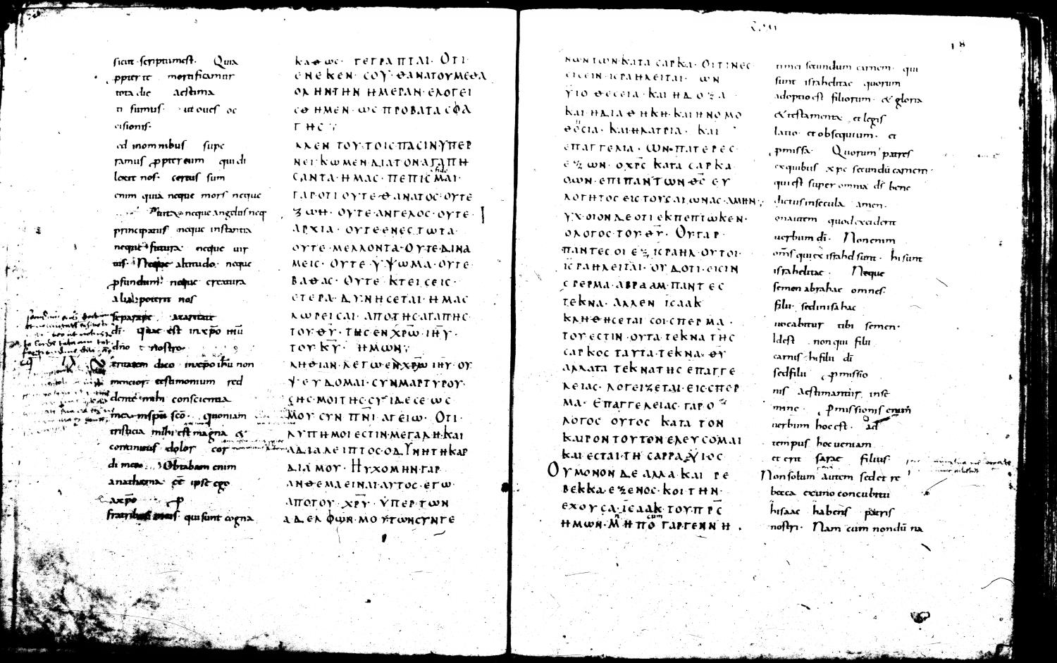 Codex Augiensis is a ninth century manuscript of Paul on parchment; Greek-Latin diglot; 136 leaves, 2 columns, 28 lines per column.