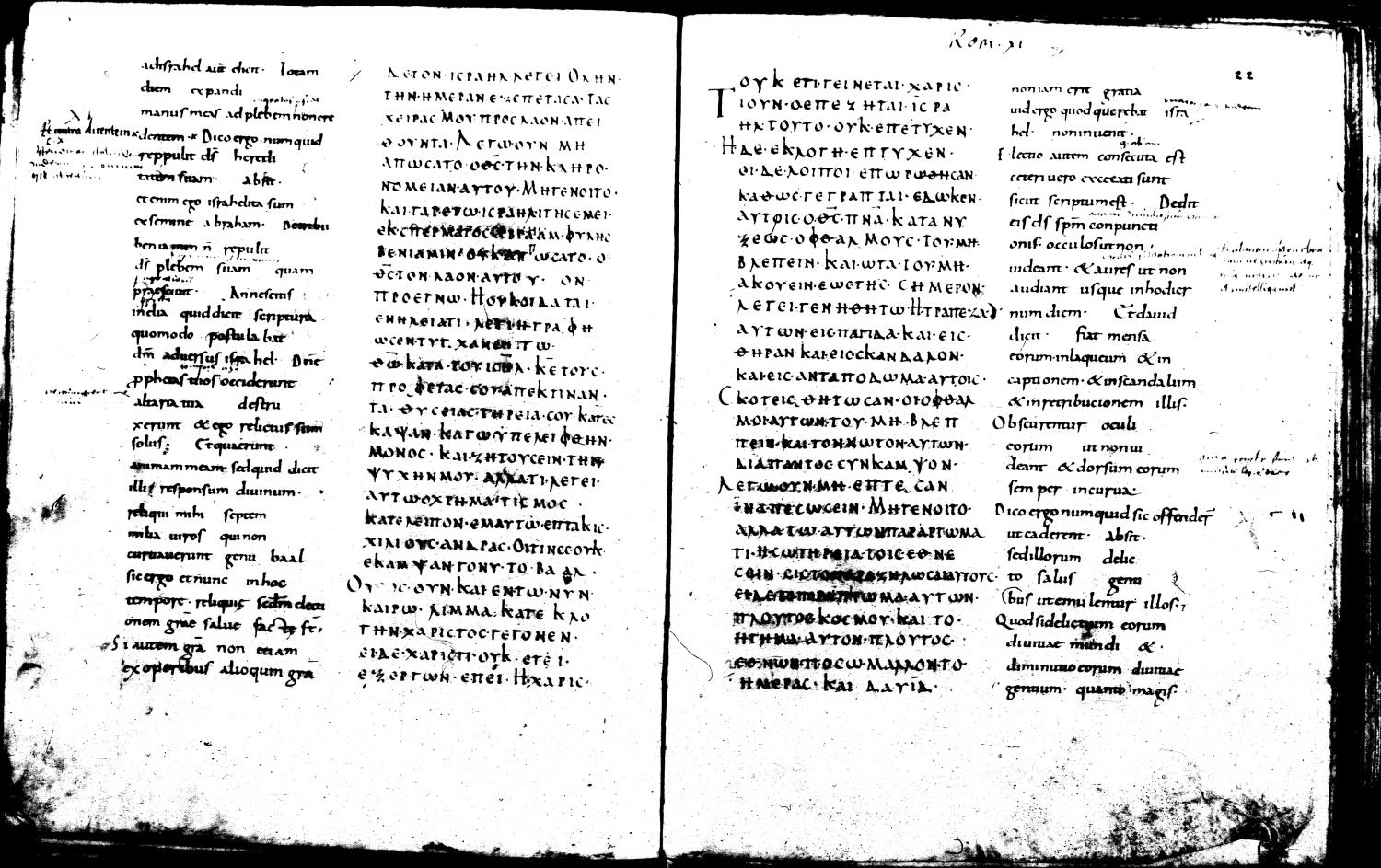 Codex Augiensis is a ninth century manuscript of Paul on parchment; Greek-Latin diglot; 136 leaves, 2 columns, 28 lines per column.