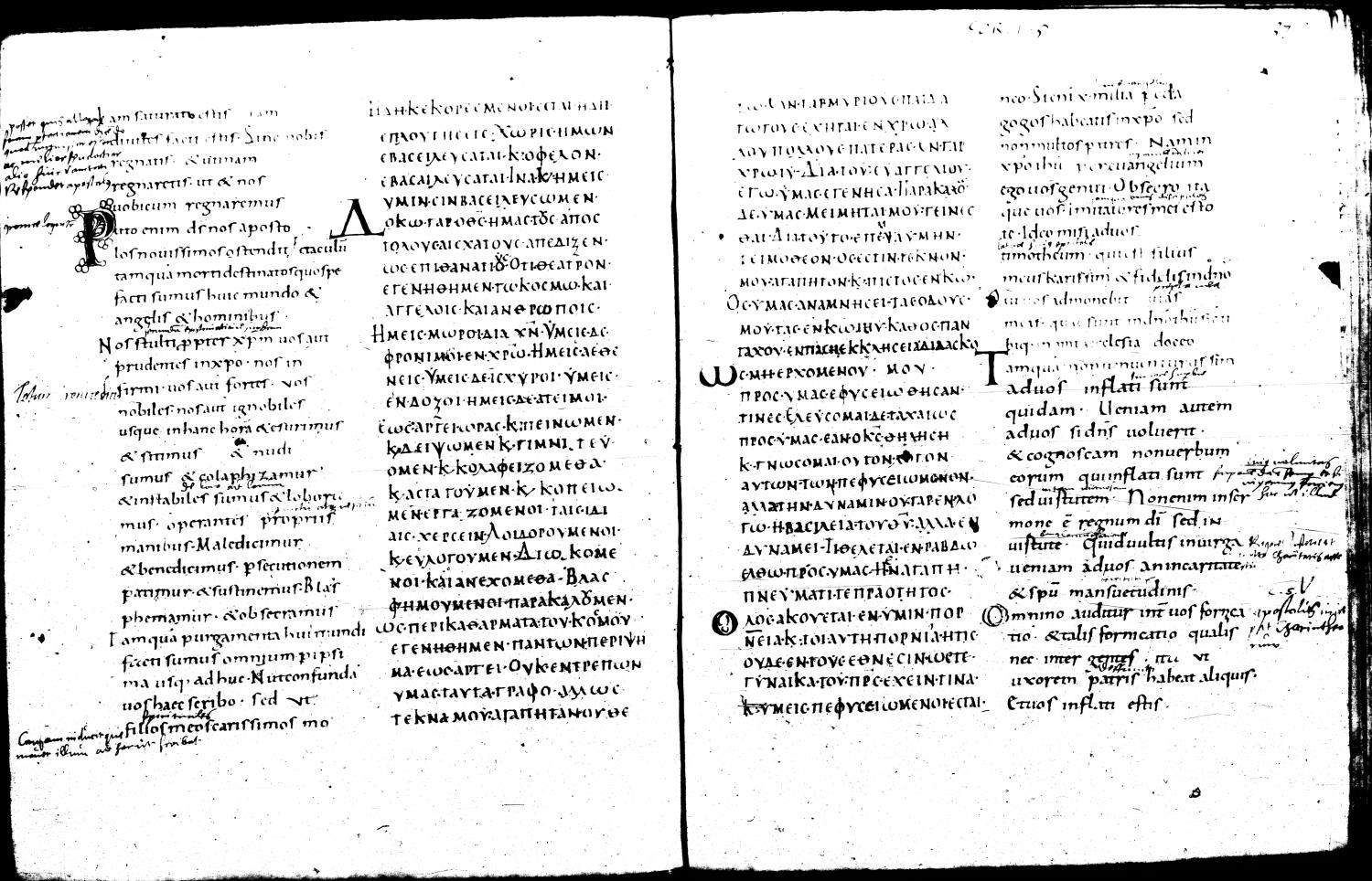 Codex Augiensis is a ninth century manuscript of Paul on parchment; Greek-Latin diglot; 136 leaves, 2 columns, 28 lines per column.