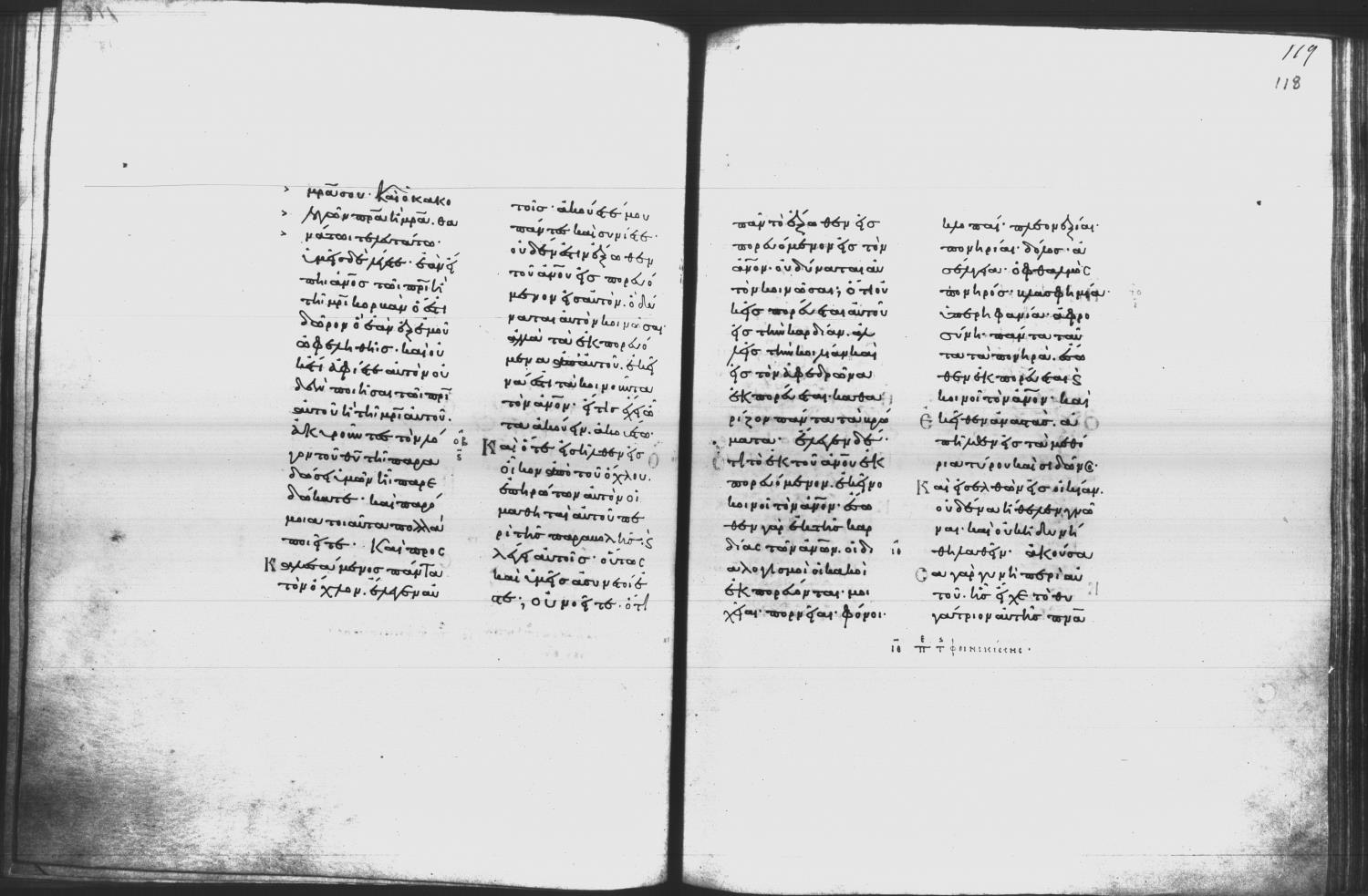Tenth century minuscule of the Gospels on parchment; 298 leaves, 2 columns, 19 lines per column. Digital images are from microfilm.