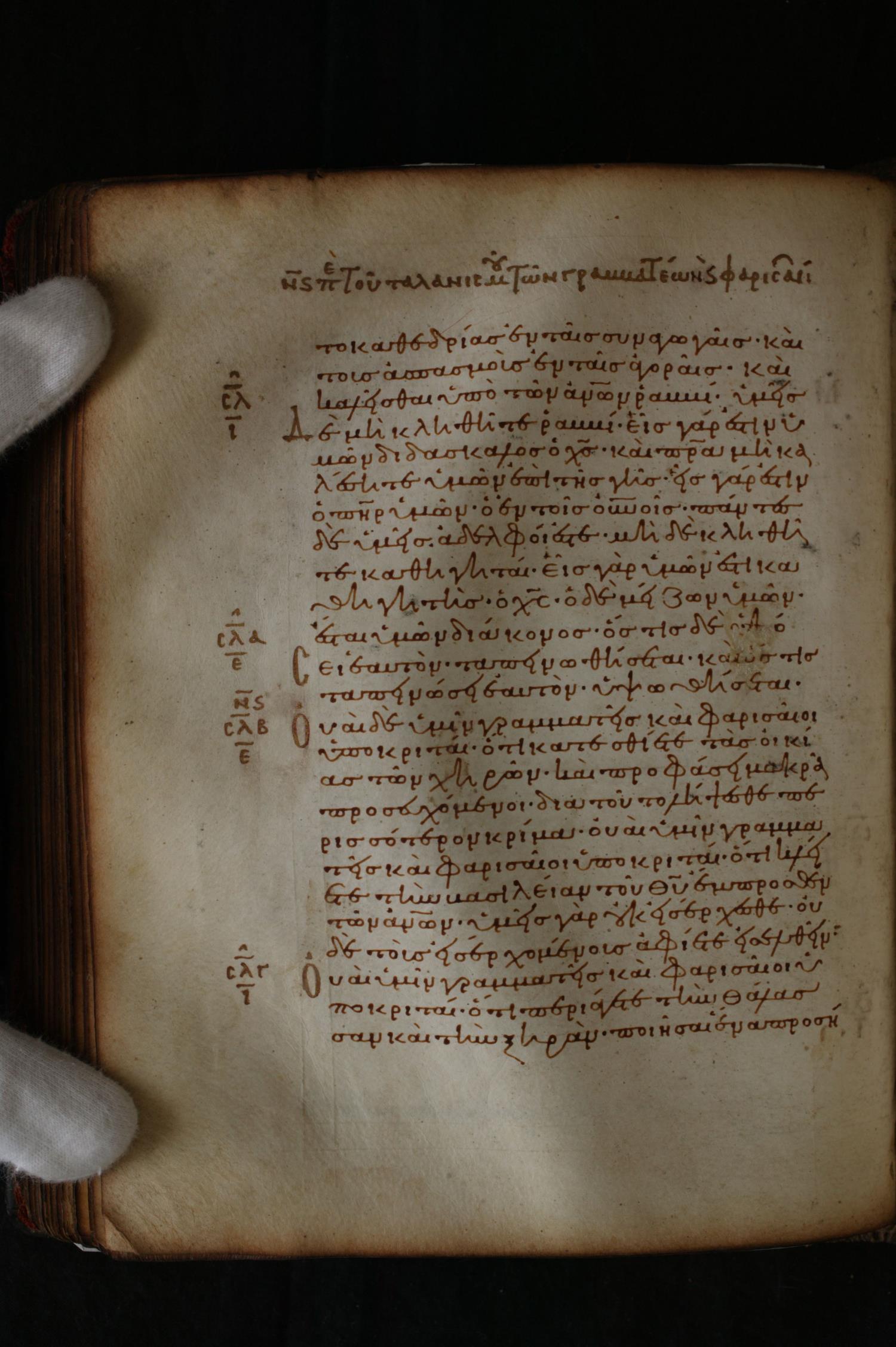 Gospels minuscule manuscript on parchment; 236 leaves, single column, 25 lines per column. By agreement with the Albanian National Archives, only a portion of the manuscript is posted.
